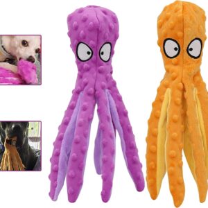 Wonfly Large No Stuffing Dog Toys with Squeakers, Octopus with Crinkle Plush Dog Chew Toys for Puppy Teething, Durable Interactive Dog Toys for Puppies, (Octopus 2pcs)