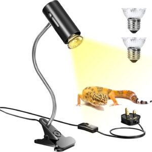 Bonlux Reptile Heat Lamp Holder, E27 Dimmable Basking Bulb Holder Flexible Clamp Lamp Fixture with Temperature Adjustable Switch & UK Plug for Pet Lizard Tortoise Aquarium (without Bulb)