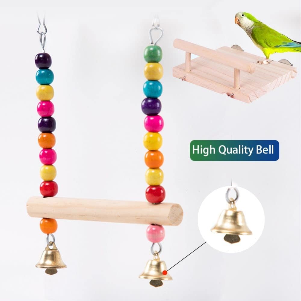 Bird Platform Stand Wooden,Parrot Perches,Wood Bird Cage Toys with Swing Bell,Flat Perch Chewing Toy for Budgie,Green Cheeks,Baby Lovebird,Chinchilla,Play Gyms Exercise