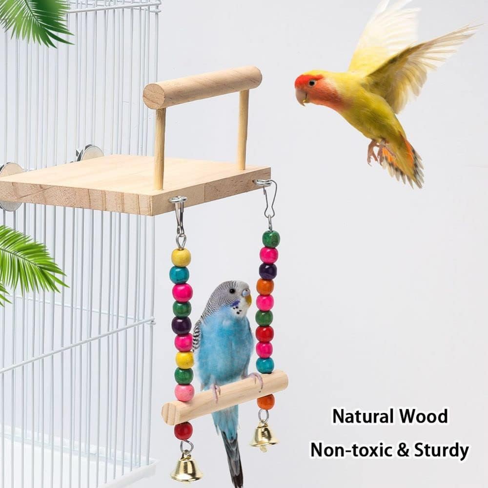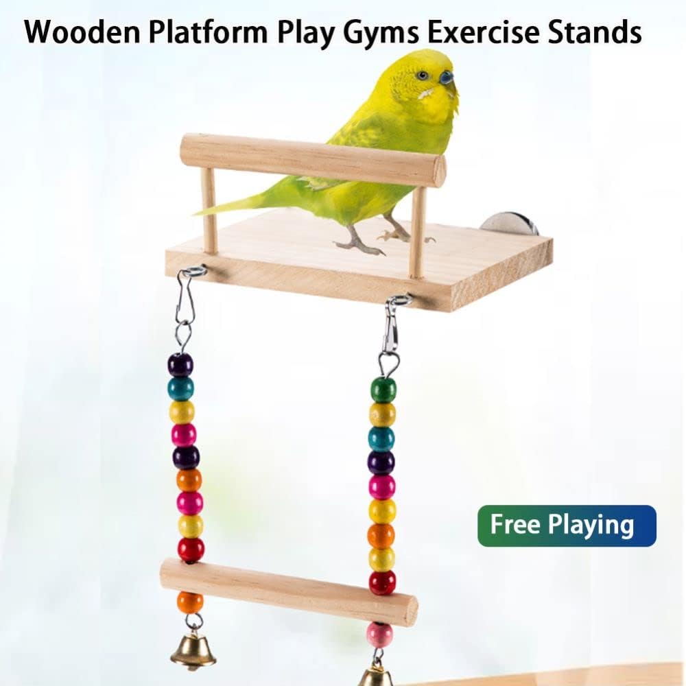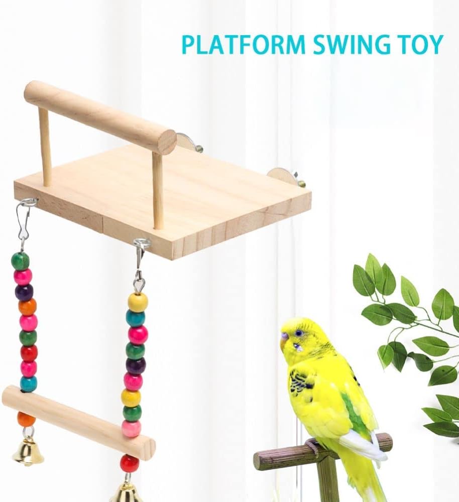 【FUN CLIMBING TOY】: A hanging swing with colorful wooden beads is attached to this bird platform stand, which is perfect for birds to climb and play and exercise their leg muscles. 2 small bells at the bottom of the swing will add more fun.