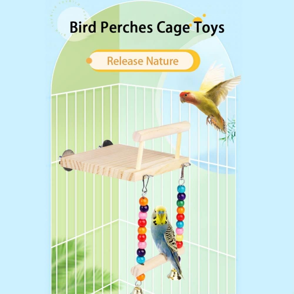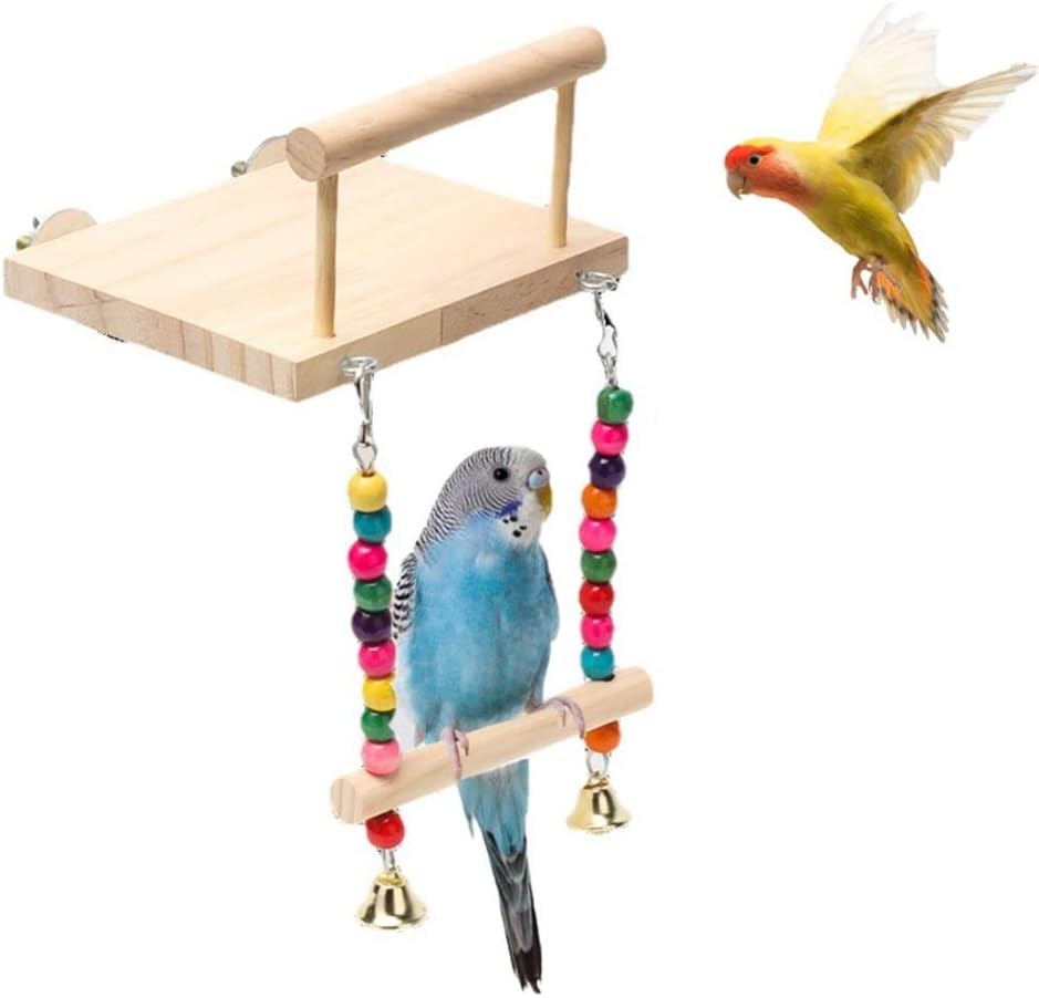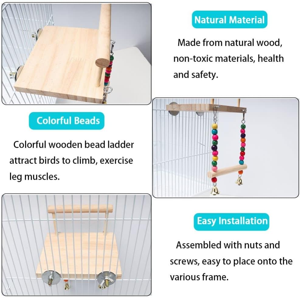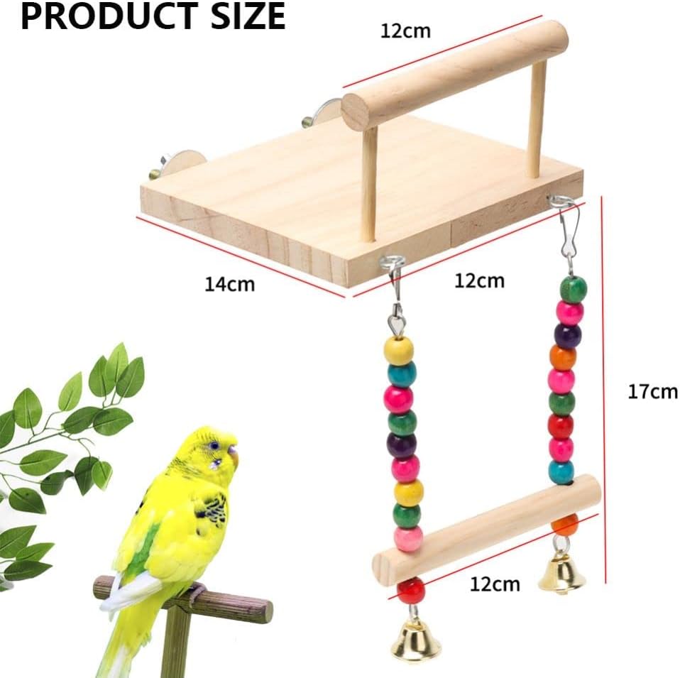 【FUN CLIMBING TOY】: A hanging swing with colorful wooden beads is attached to this bird platform stand, which is perfect for birds to climb and play and exercise their leg muscles. 2 small bells at the bottom of the swing will add more fun.