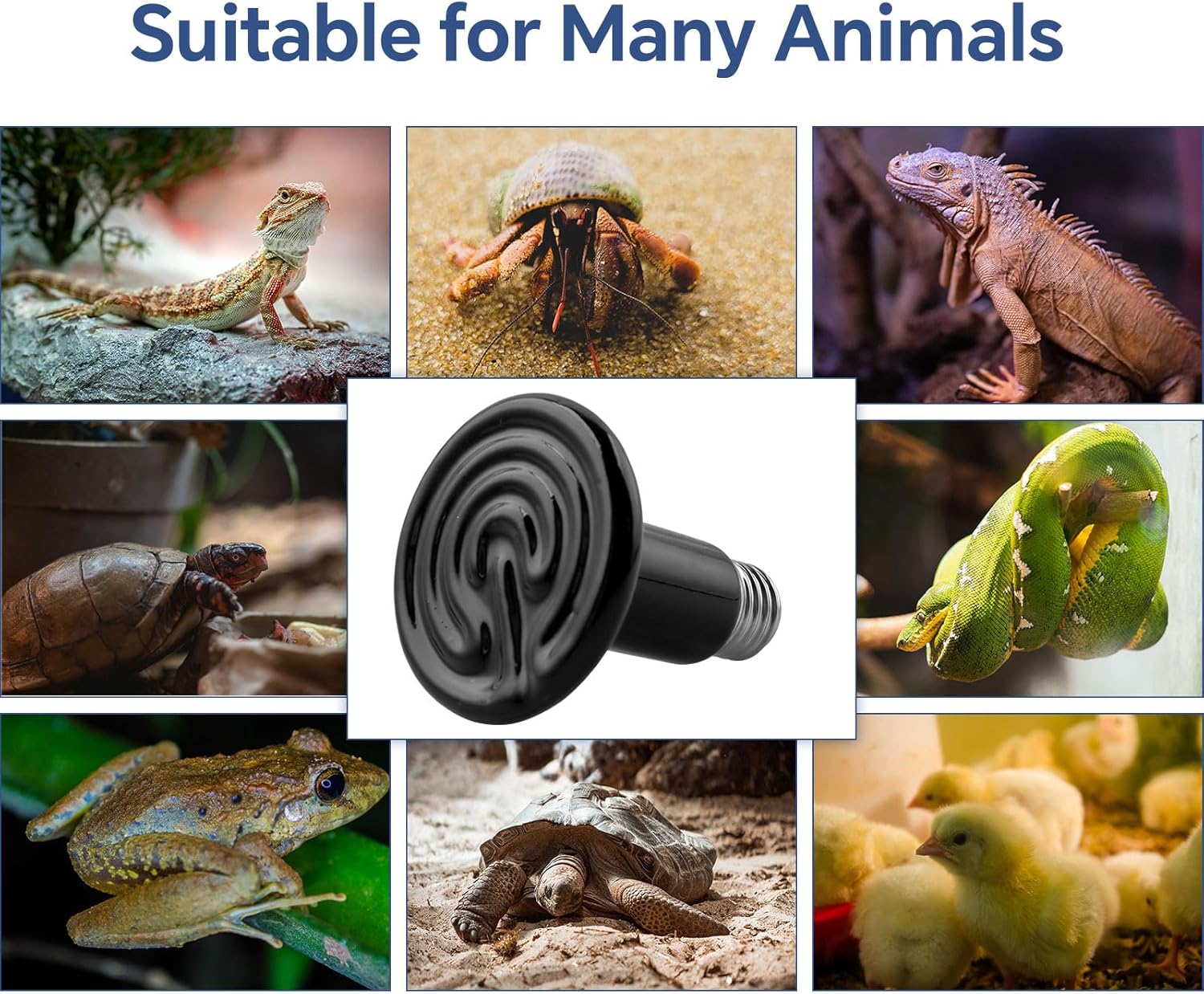 【Wide Application】Suitable for all kinds of reptiles and amphibians, great for pets, coops, chickens, lizards, turtles, birds, snakes, spiders, rabbits, chameleons, bearded dragons, frogs, toads, geckos, iguanas and more. Please contact us if the bulb is broken, we will refund you no questions asked.