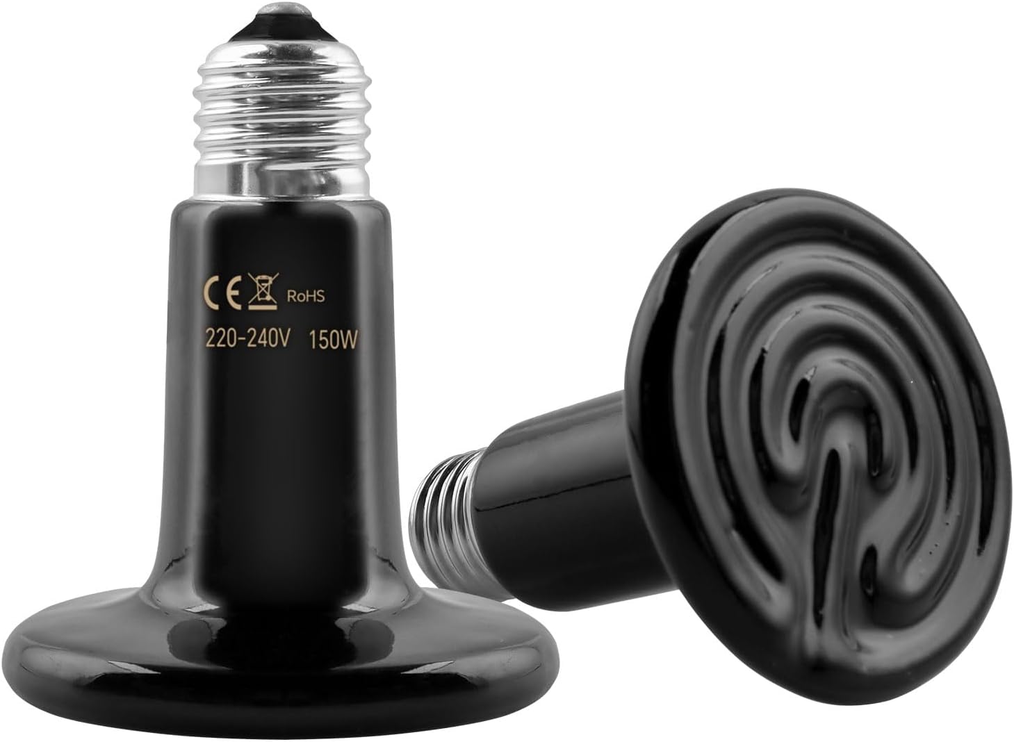 Caldarax 2 Pack 150W Terrarium Reptile Heat Bulb, E27 Infrared Ceramic Heating Lamps, AC 220-240V, Ceramic Heat Emitter, for Reptiles, Lizards, Tortoise, Snakes, Chicken