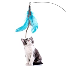 ? Safe and Harmless Materials: Made of high-quality non-toxic materials, 100% safe and natural for pets. Feather toys are high quality, bite-resistant and non-toxic to cats. The steel wire of the Funny Cat Wand is stretch-resistant and can withstand the tug of a cat. Flexible and durable, not easy to break.