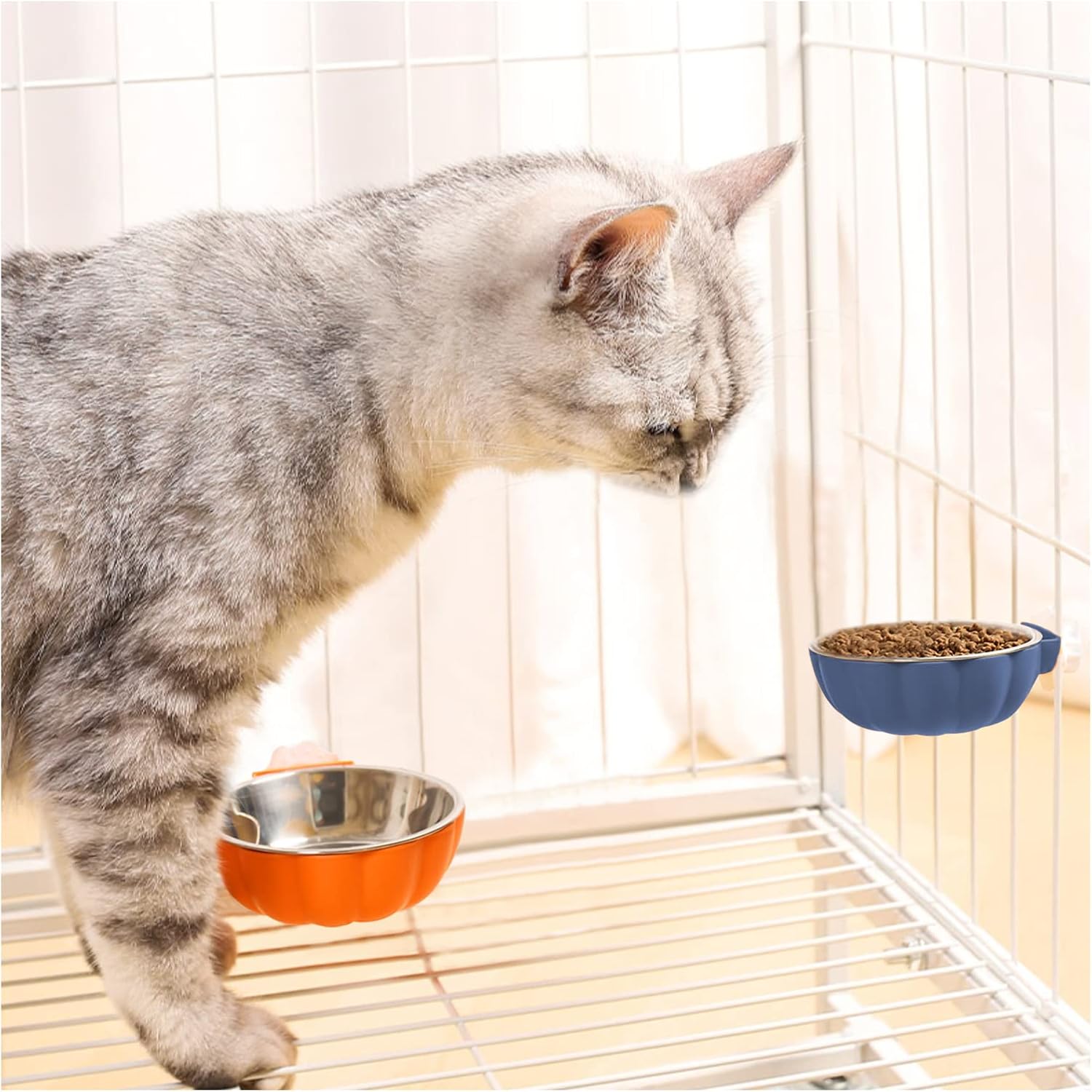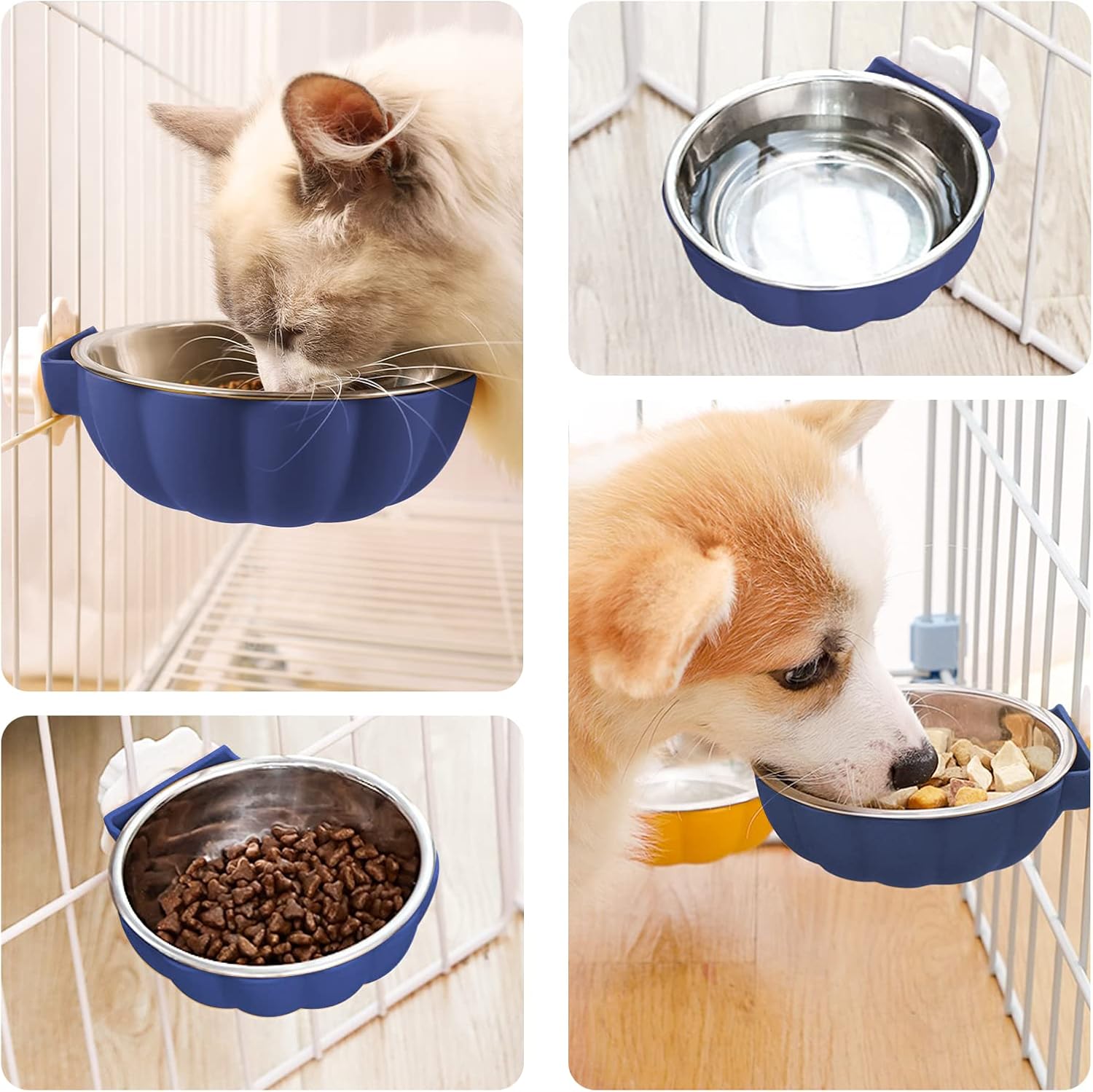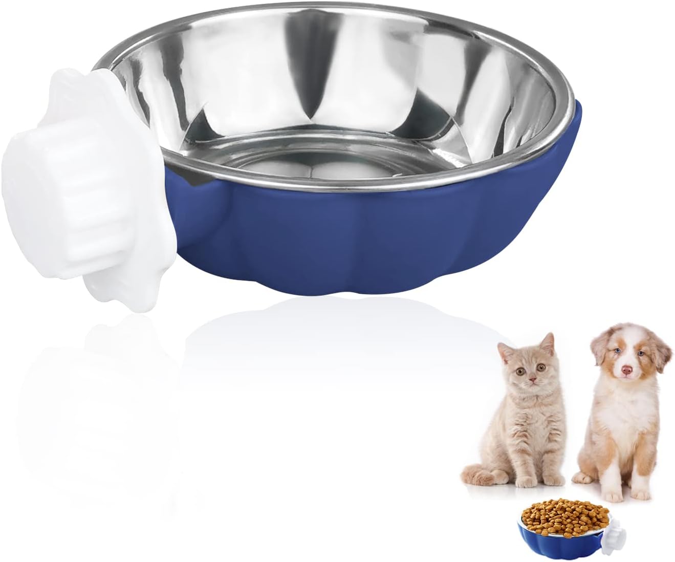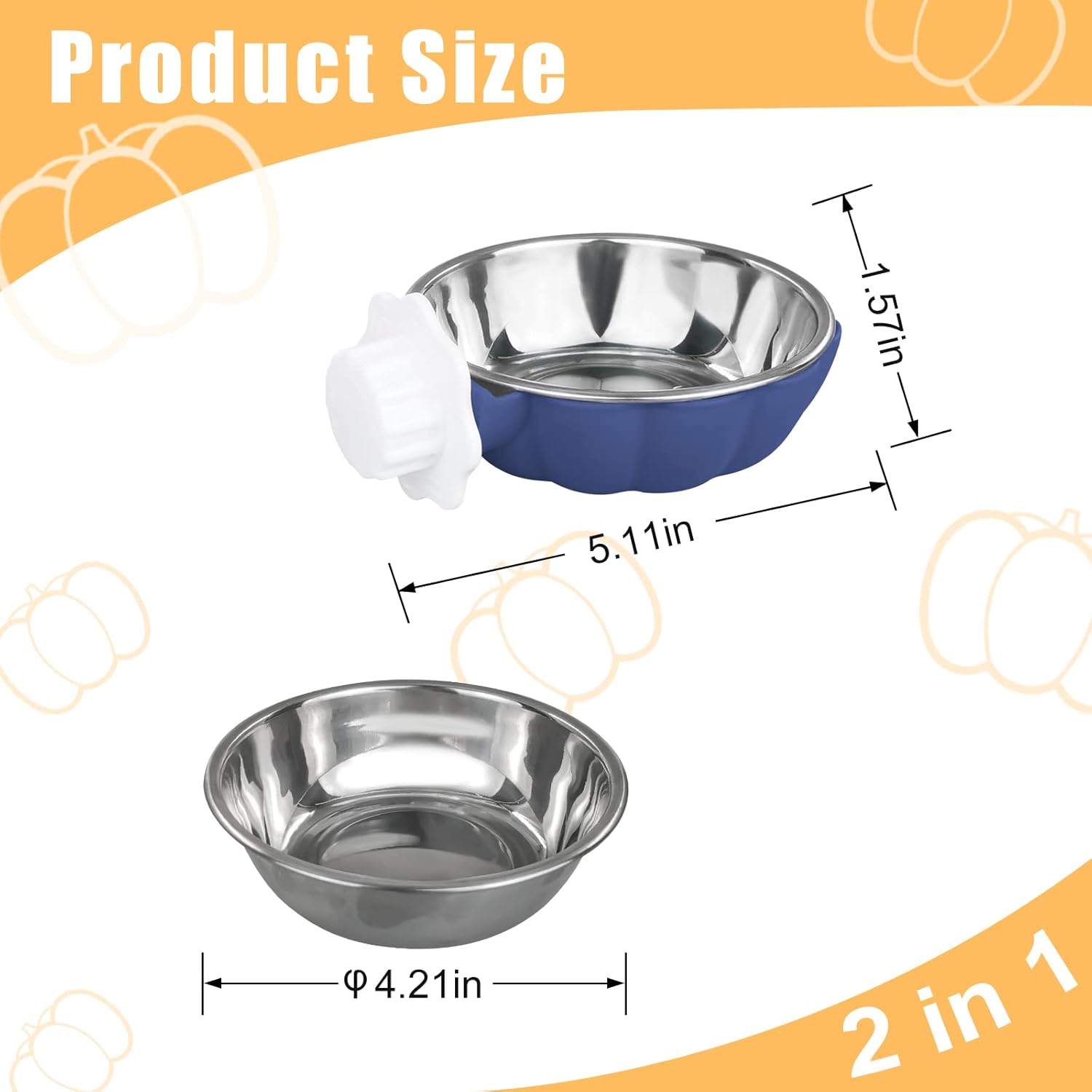 FuninCrea 2-in-1 Pet Crate Bowl for Crates & Cages Removable Crate Water Bowl Creative Cute Pumpkin Stainless Steel Pet Hanging Bowl Small Cage Dog Bowl for Puppies Cats Small Animals (Small, Blue)