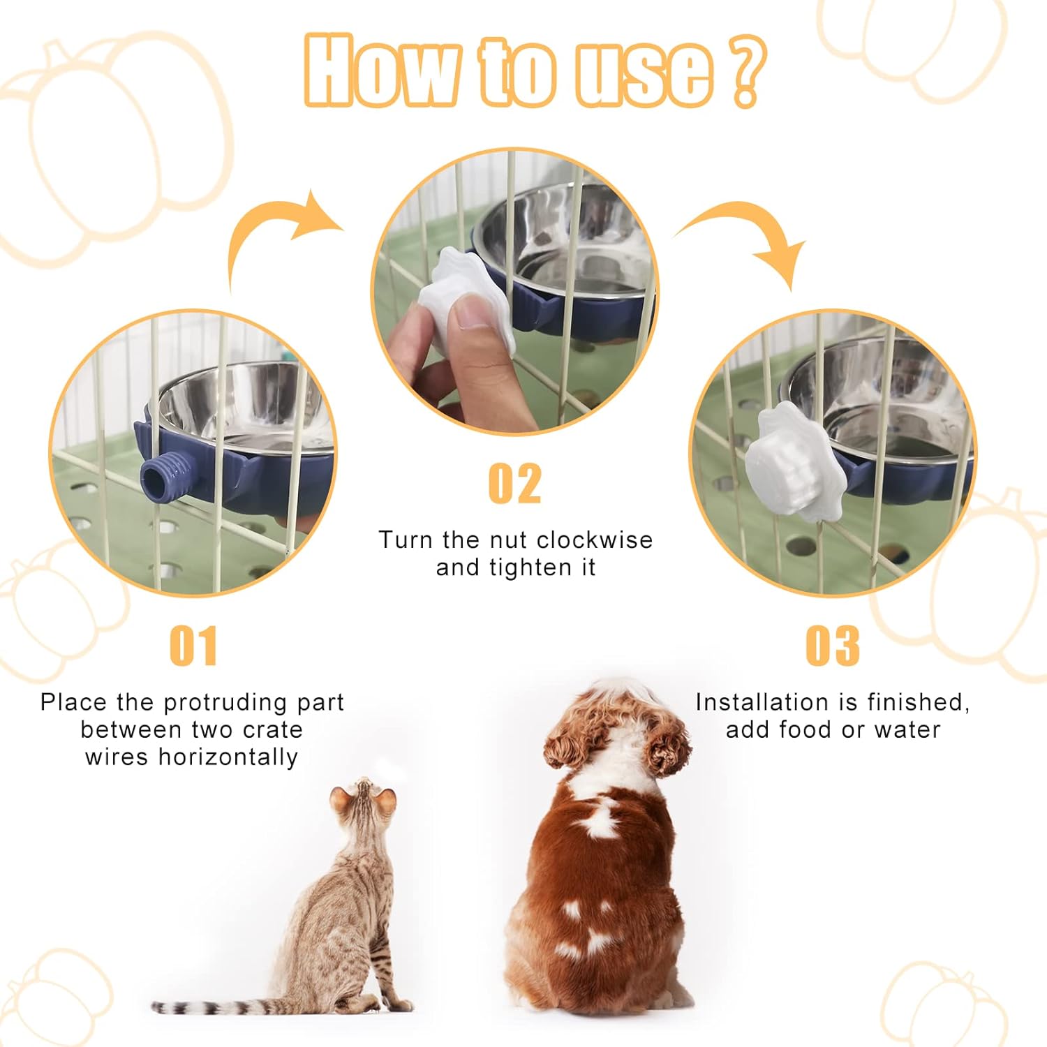 Save Space: Crate pet bowls can be mounted on the crate, which gives your pet more space. Compared to regular pet bowls, crate bowls prevent more food and water spills caused by tilting and sliding, providing a clean and comfortable dinner experience for pets