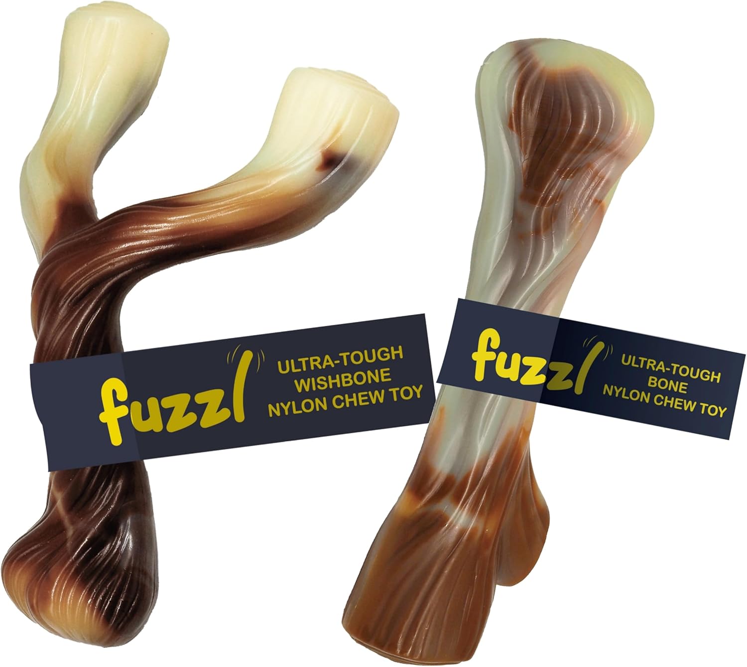 Fuzzl Ultra Tough Nylon Dog Chew Toy – Wishbone and Bone Beef Flavour – Tough Dog Toys for Extreme Chewers Dog Bone Long Lasting Dog Chew Toys for Aggressive Chewers Strong Dog Toy Durable Puppy Toys