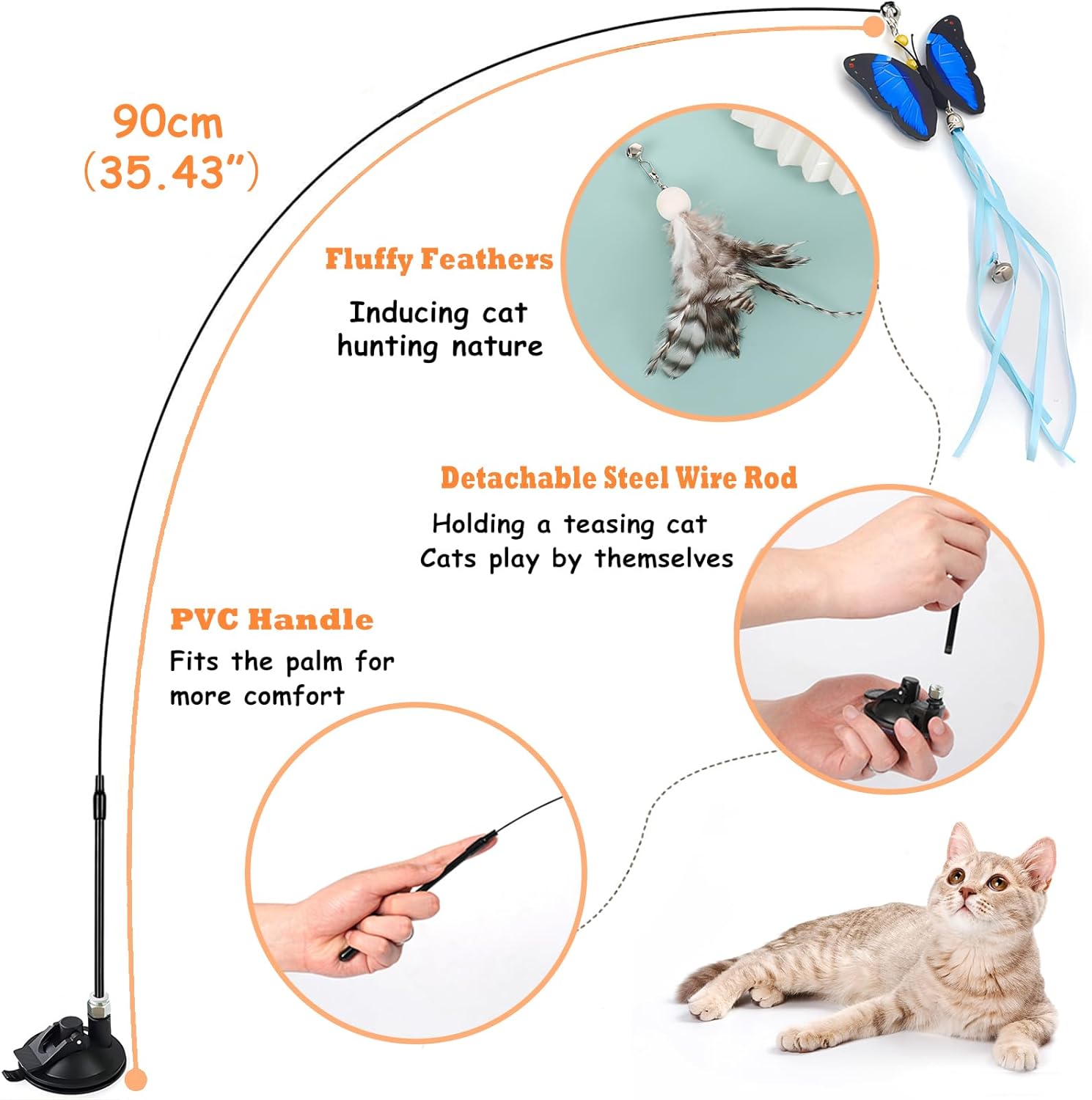 【Safe and Harmless Materials】Made from premium non-toxic materials that are 100% safe and natural for your pet.Feather toys are high-quality, bite-resistant, and non-toxic to cats. The cat stick is made of comfortable PVC material and high-quality steel wire, which is durable, lightweight, and hard to fade and break.