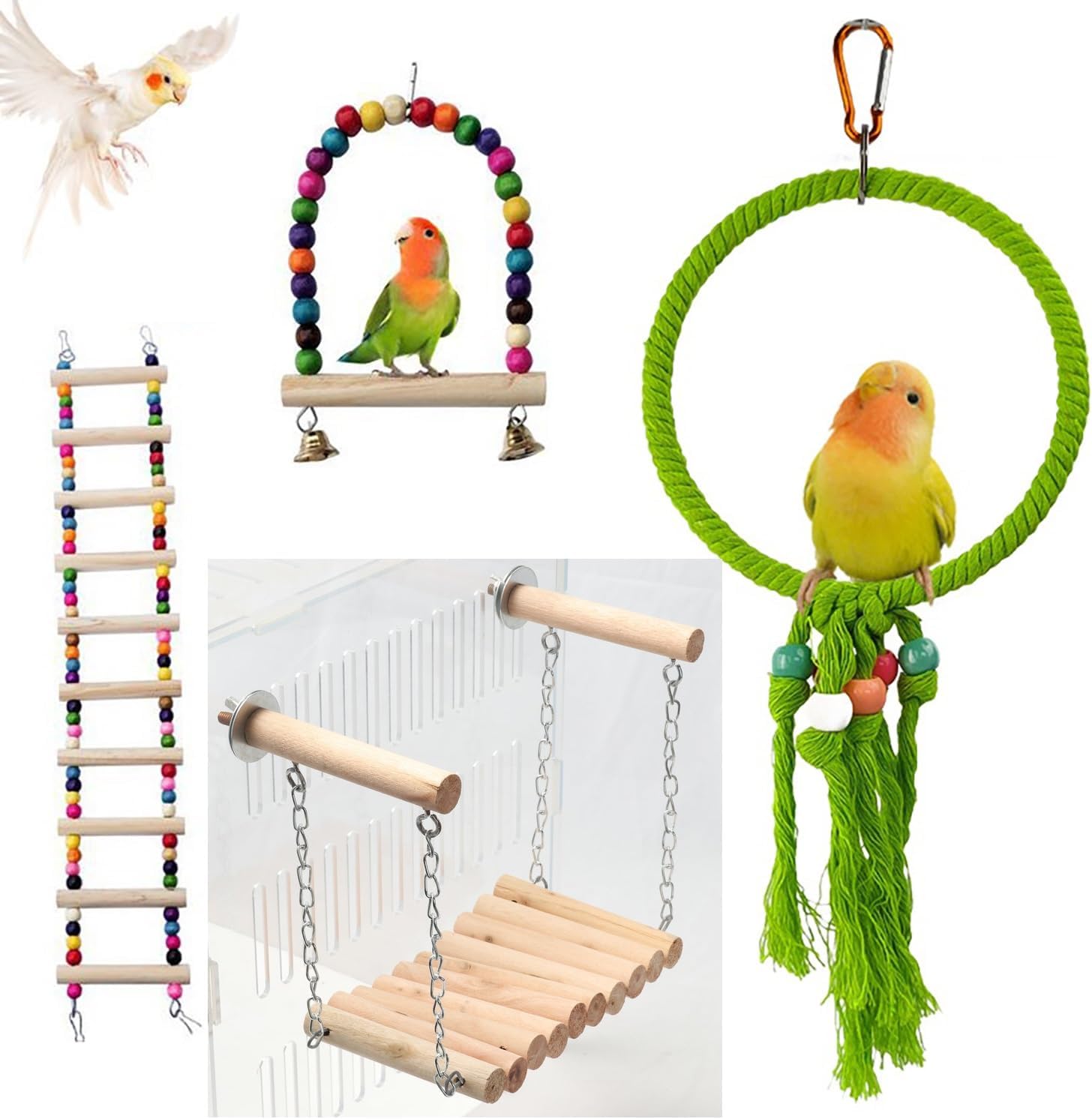 Hanging Pet Bird Cage Accessories,Wooden Bird Swing for Cockatiels,Parrots,Parakeets,Lovebirds,Conures,Budgies