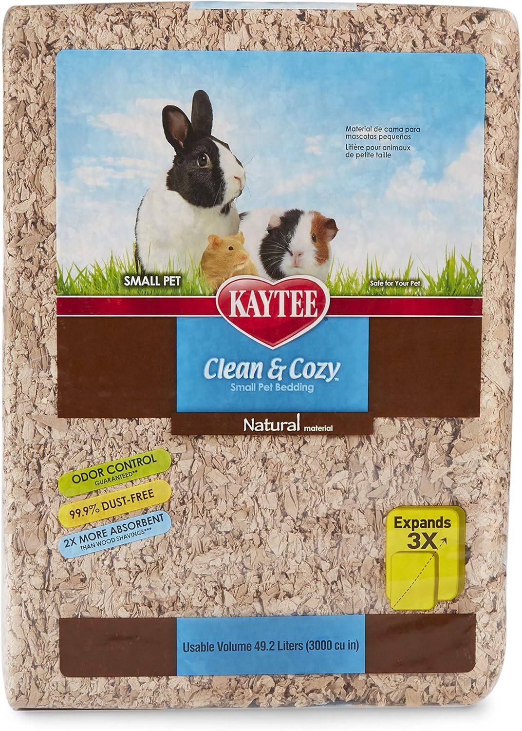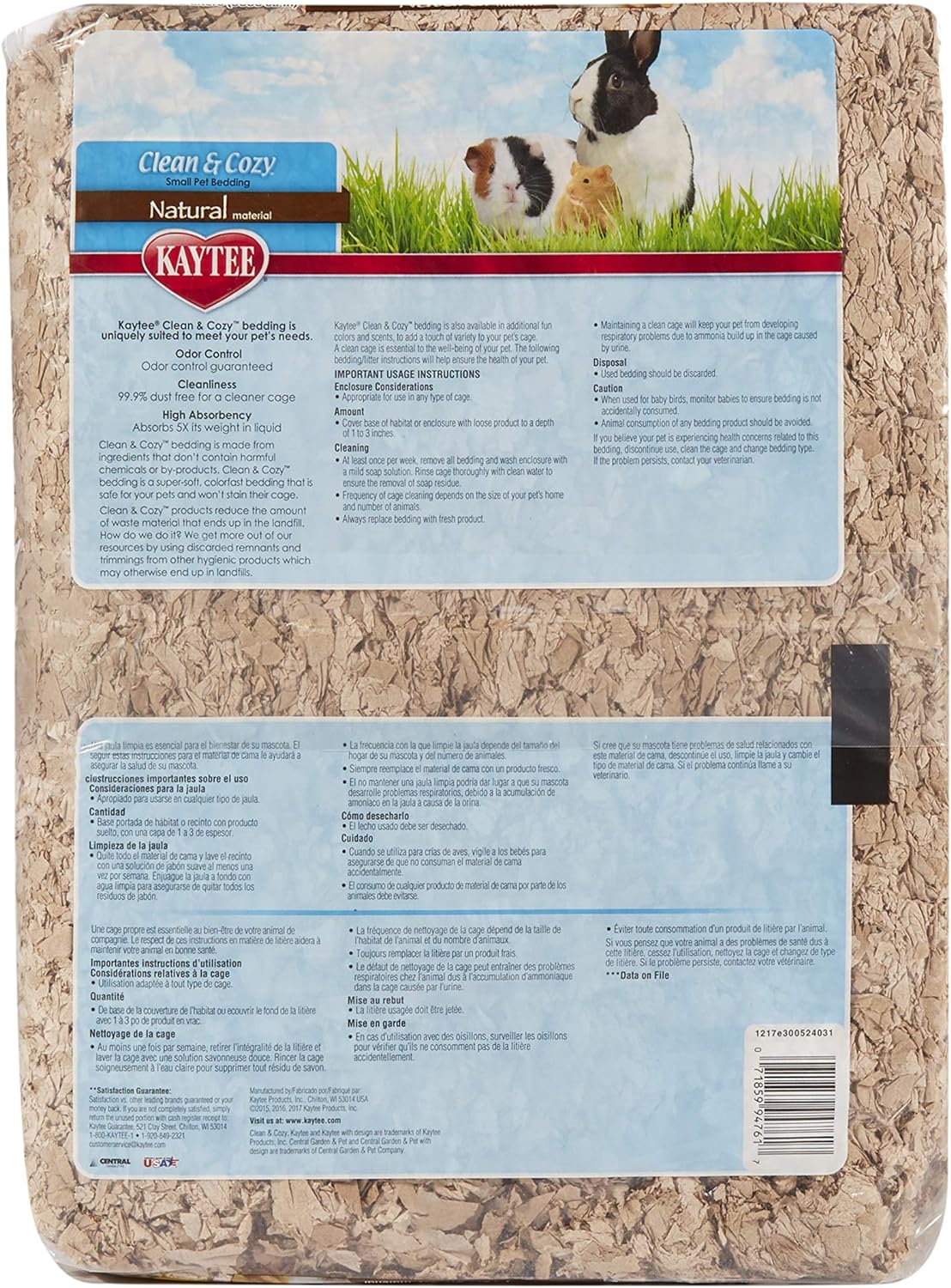 Kaytee Clean & Cozy small pet paper bedding gives you a whole new standard in super-soft, absorbent bedding. Clean & Cozy is soft and fluffy to encourage burrowing or nesting while absorbing two times more liquid than wood shavings. Clean & Cozy’s absorbency means less odour.