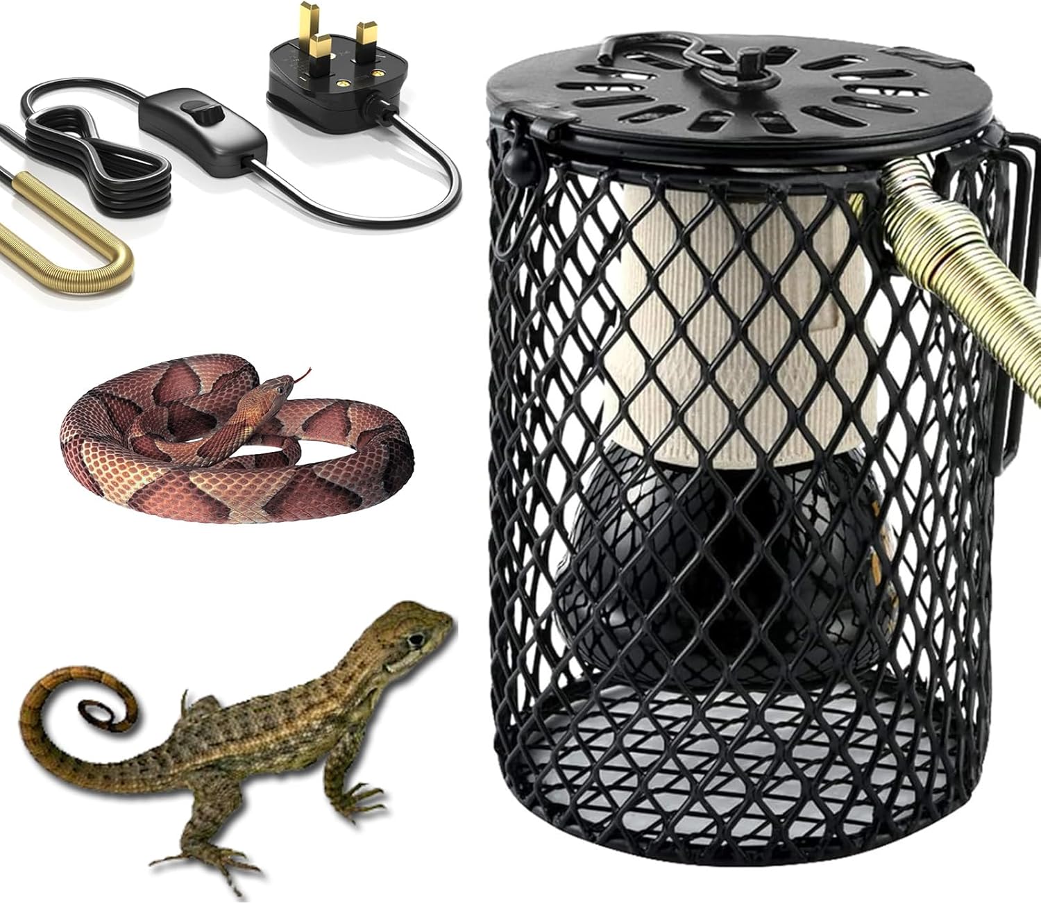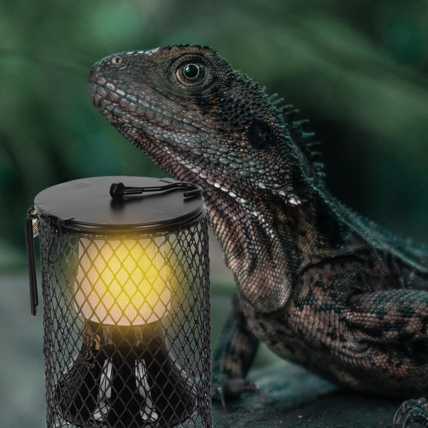 ?️ Overheat Protection: Equipped with an anti-scalding cage, this reptile heat lamp prevents your pets from direct contact with the bulb, ensuring their safety and your peace of mind. (Note: Ensure reptiles maintain a distance of at least 11.8 inches/30 cm from the lamp.)