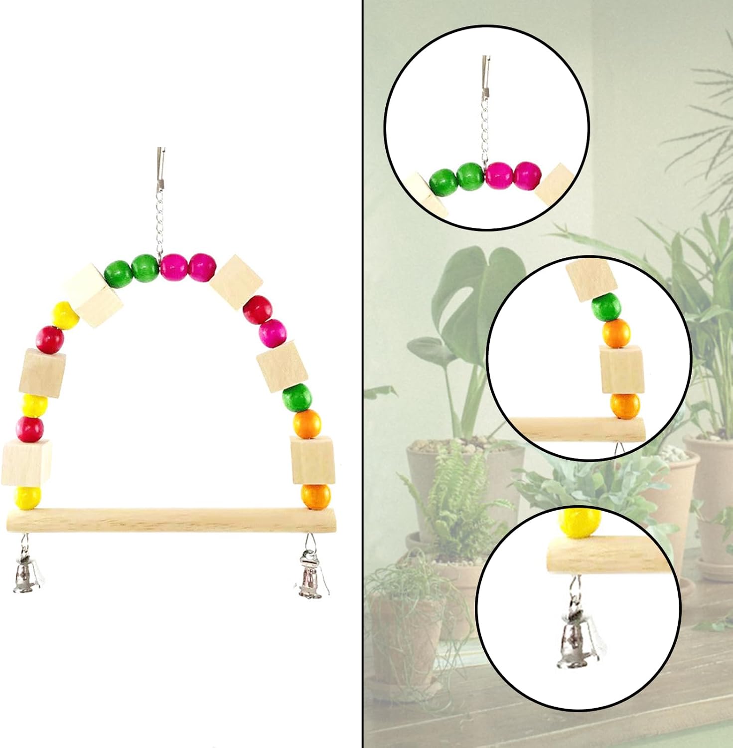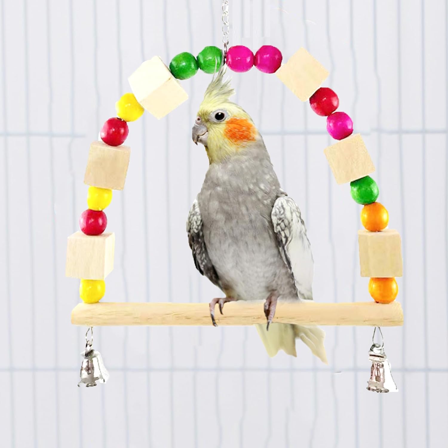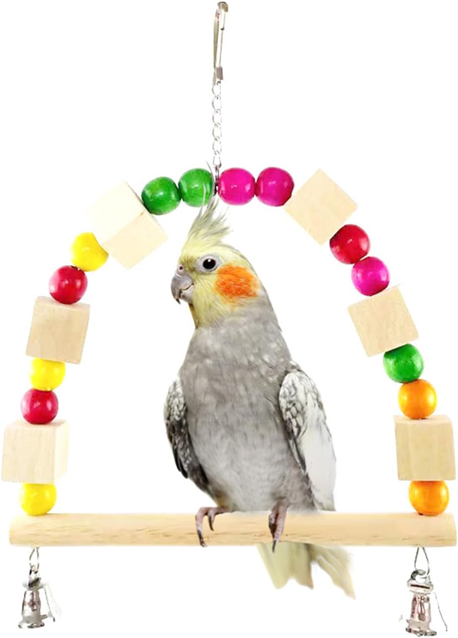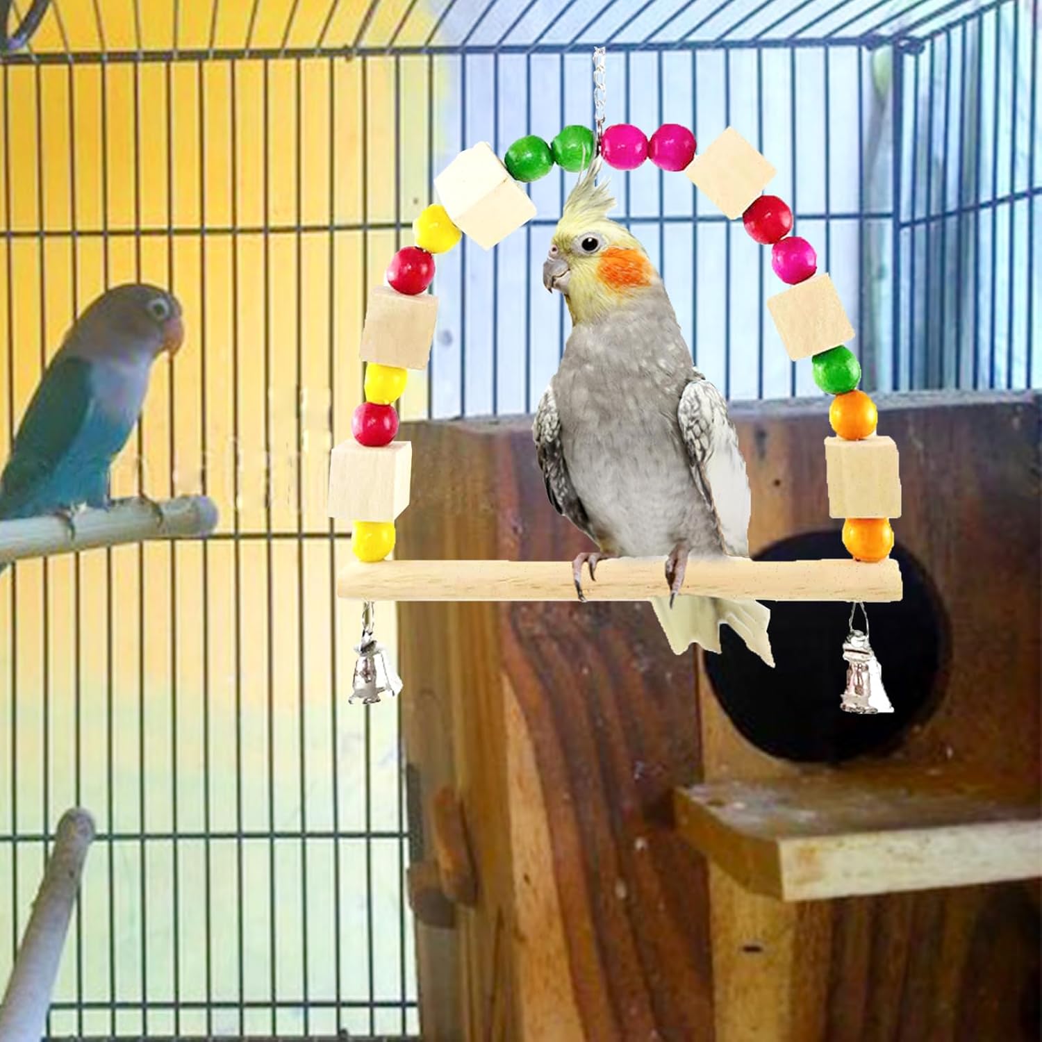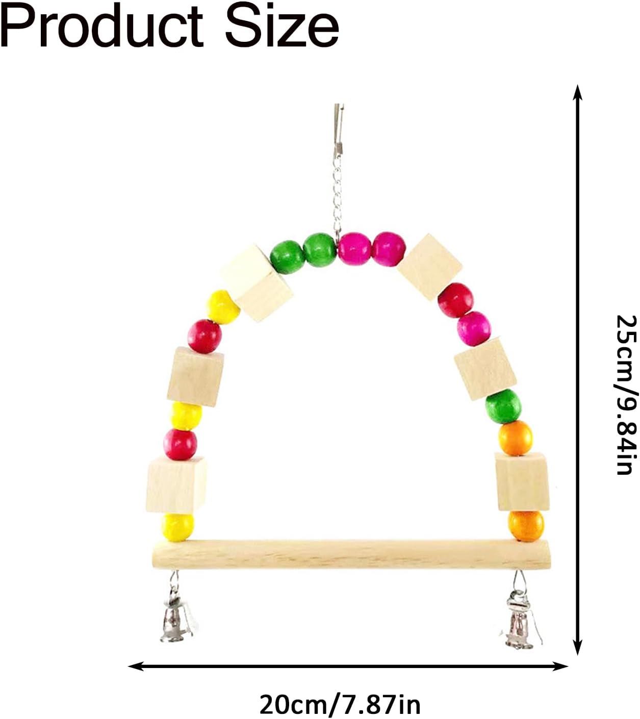 Parrot Swing,Wooden Bird Swing Perch Toys Hanging Perch Hammock with Bells Bird Toys Parakeet Toys Bird Cage Accessories for Parakeet Cockatiels Lovebirds Budgies Small Medium Birds