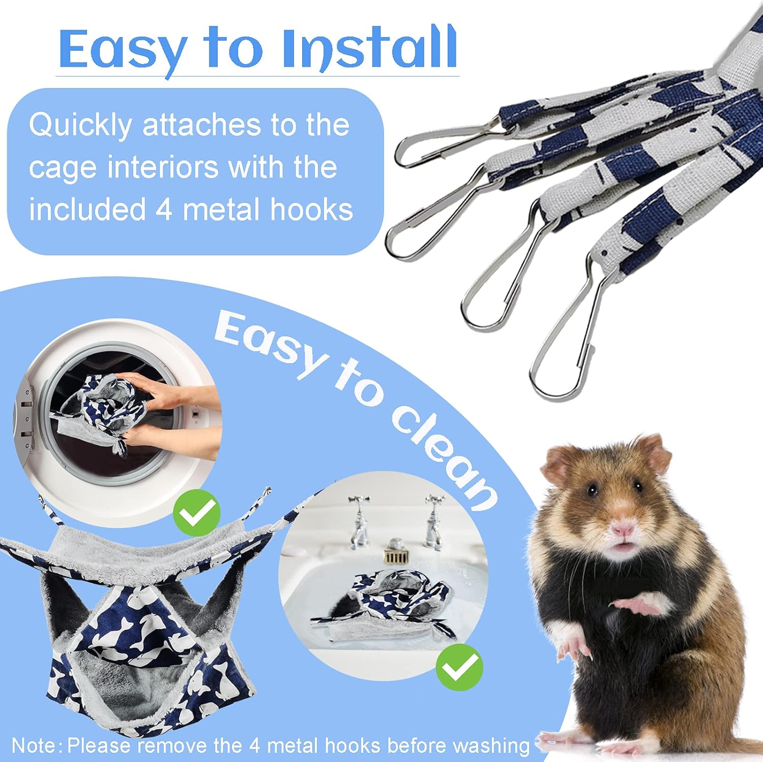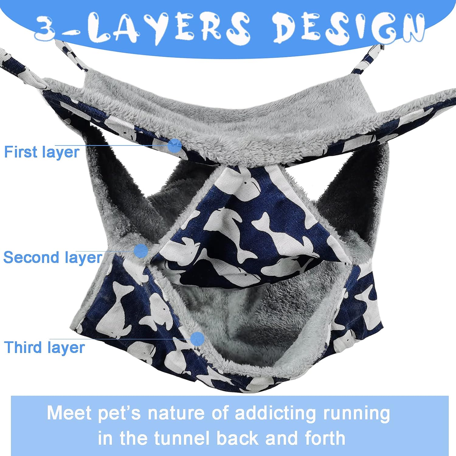 Pet Cage Hammock 3 Layers Hamster Hanging Bed Plush Sugar Glider Cage Chinchilla Swing Nest Guinea Pig Nap Sack Warm Ferret Hideout Accessories Toys for Small Animals Rat Rabbit Squirrel
