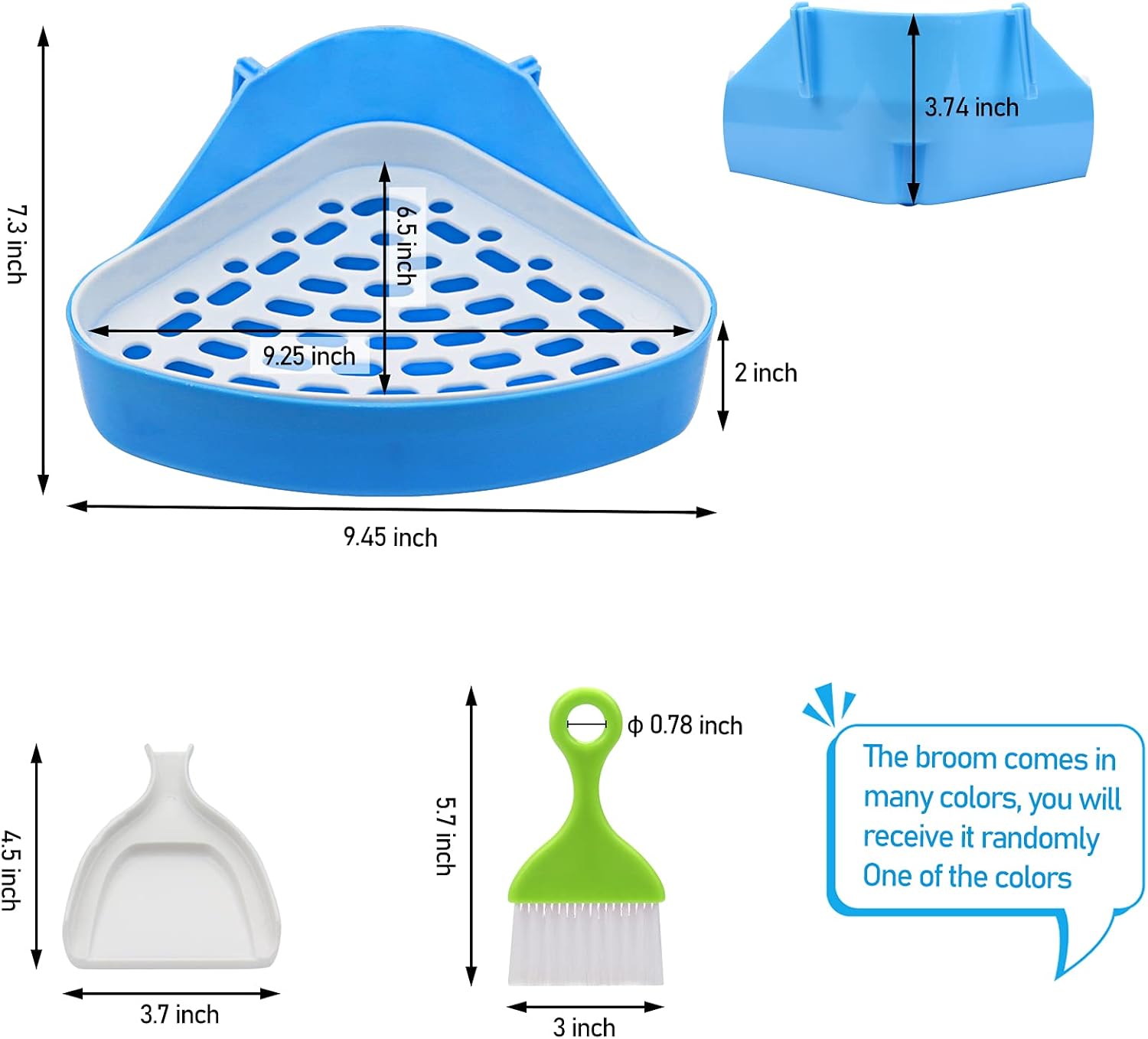 Size:This corner litter box size is 9.25×6.5 in,suitable for dwarf rabbits,guinea pig,chinchillas,adult rats; it would probably be too small for a larger rabbit