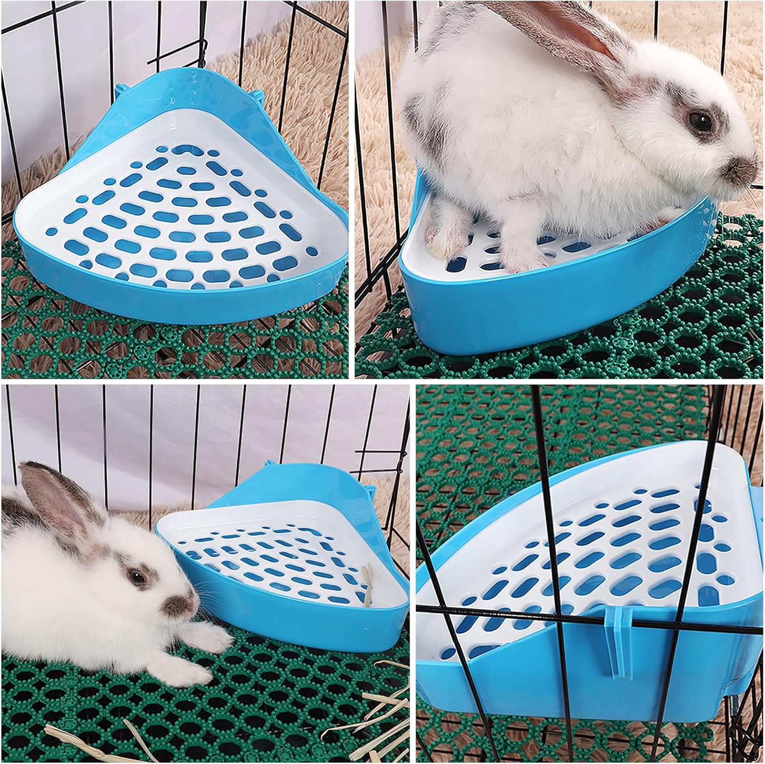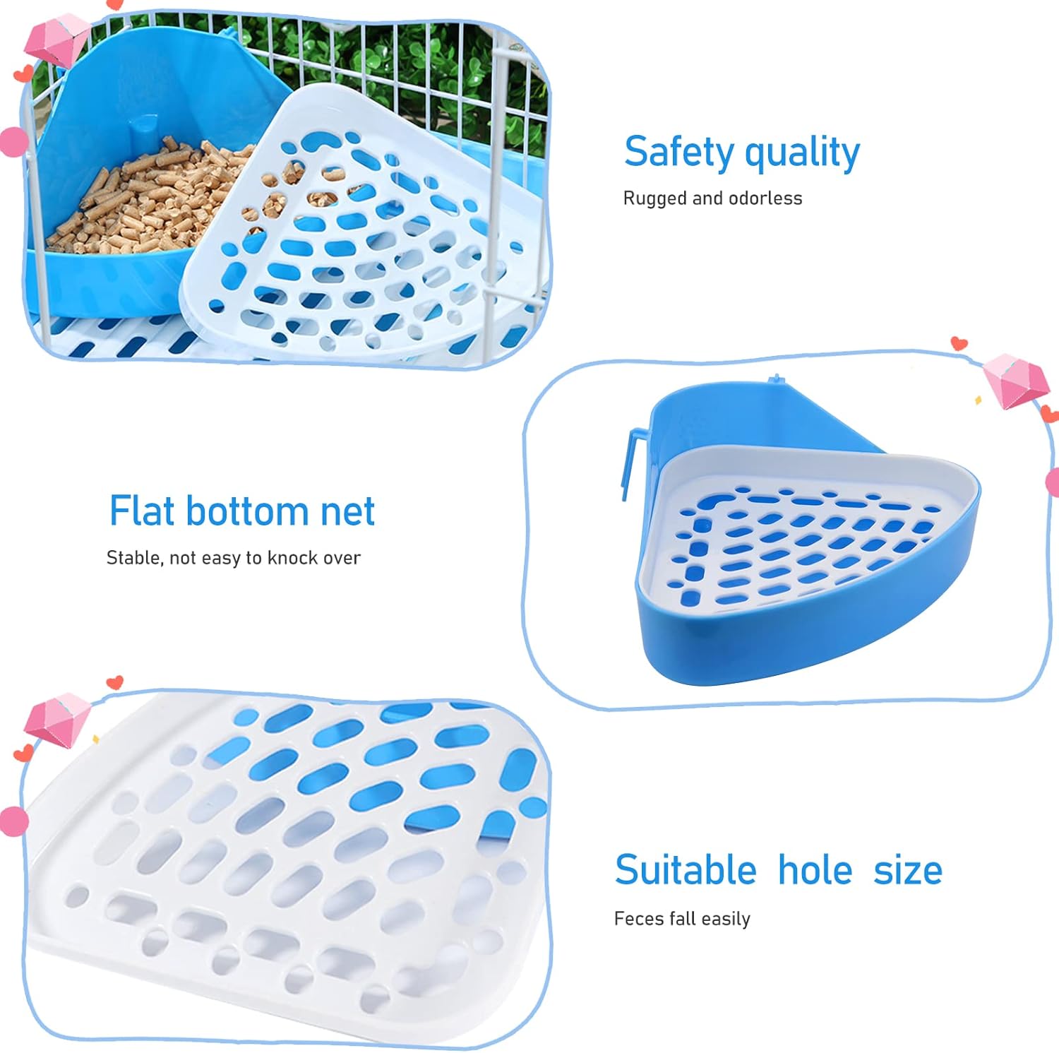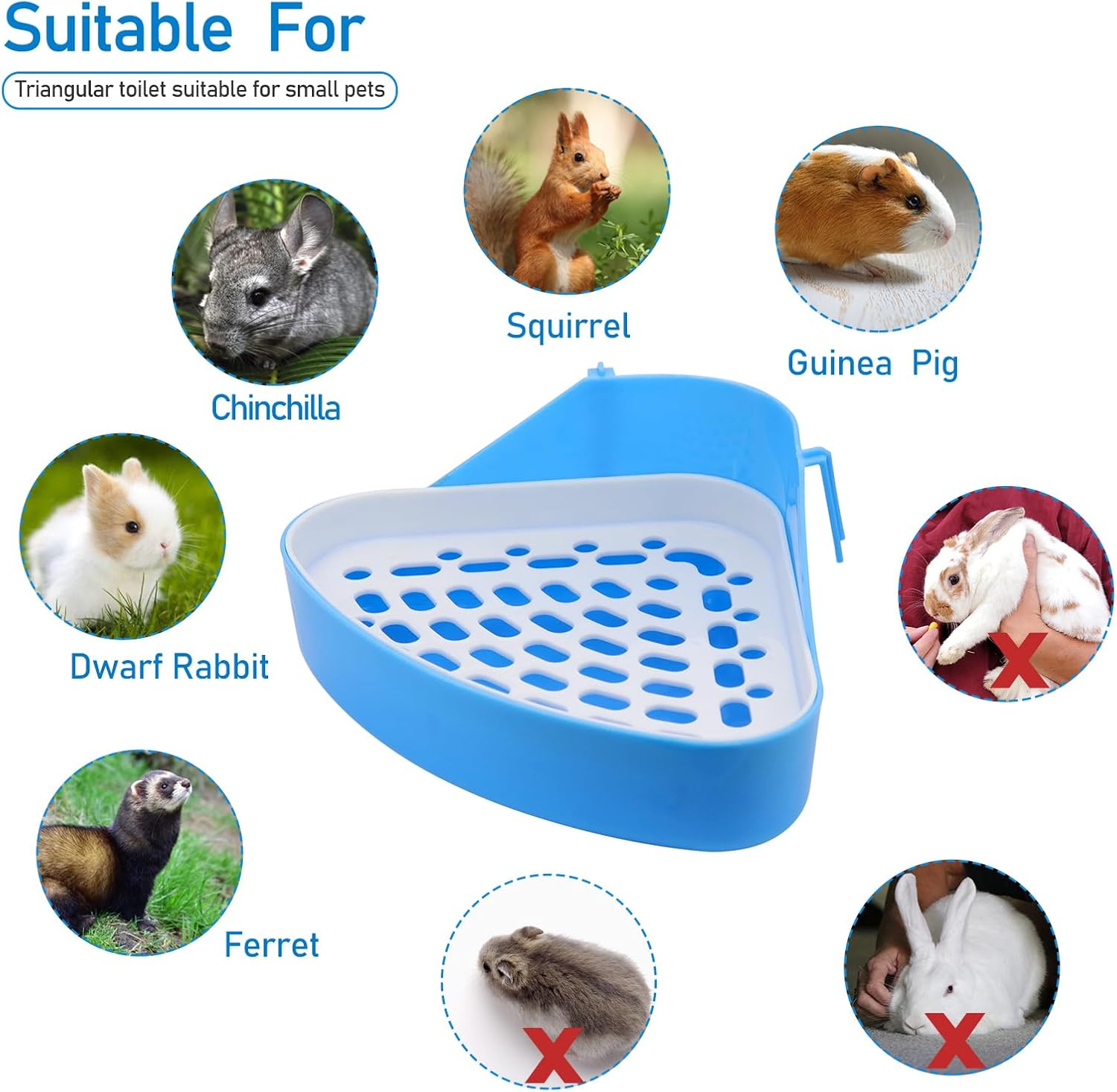 Rabbit Litter Tray for Cage Corner – Easy to Clean Toilet Triangle Potty Box for Guinea Pig/Ferret/Bunny/Rat/Small Animal (Blue)