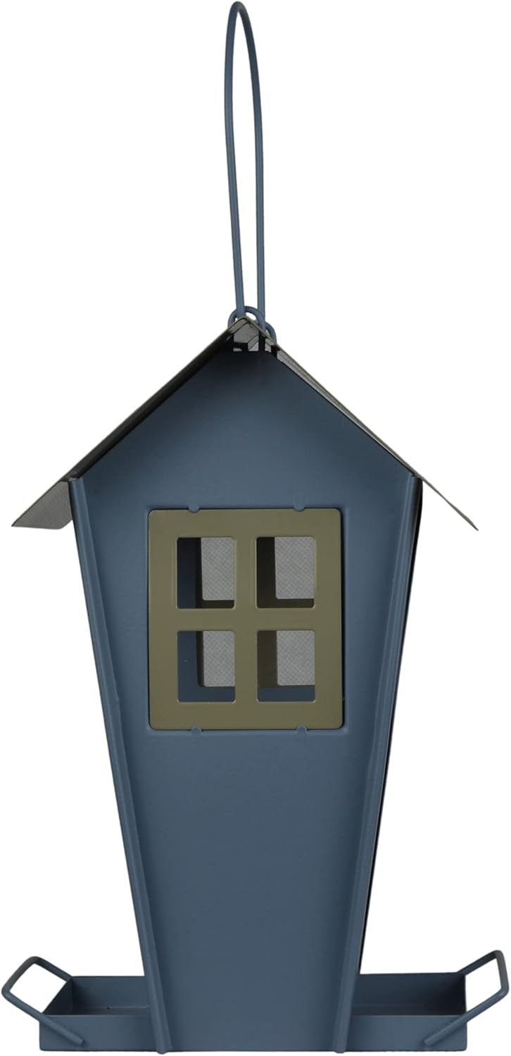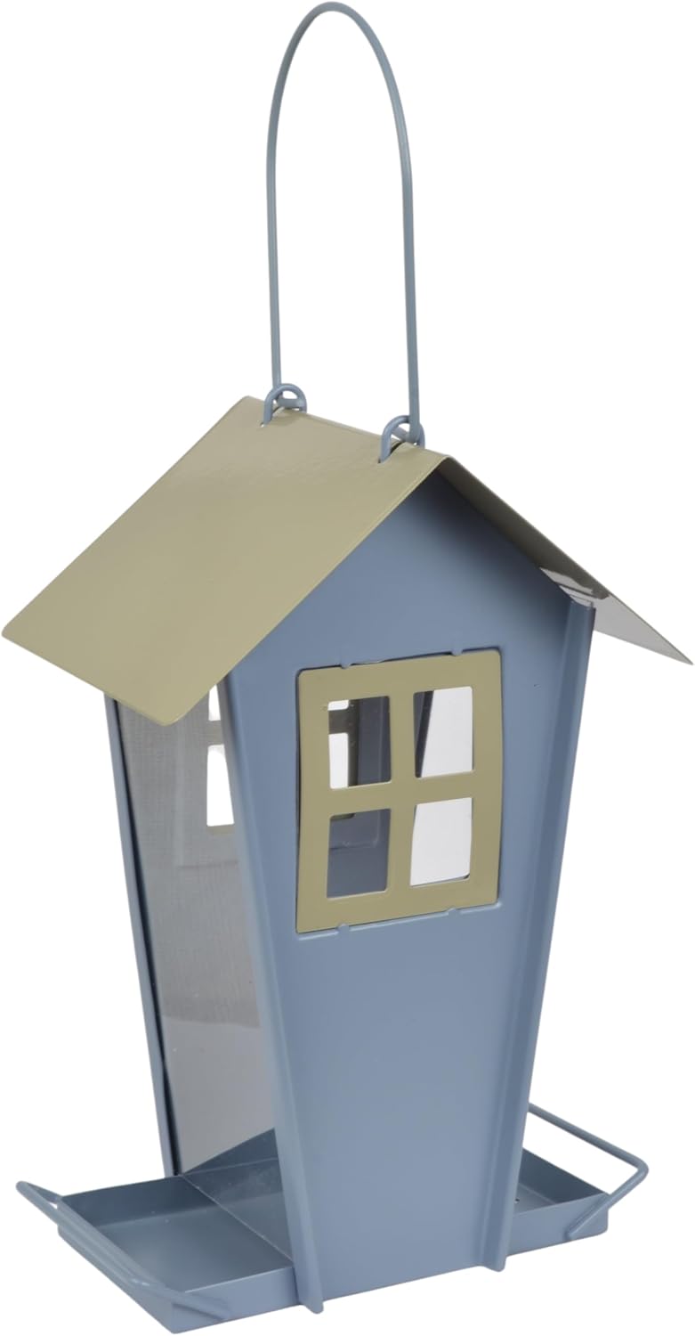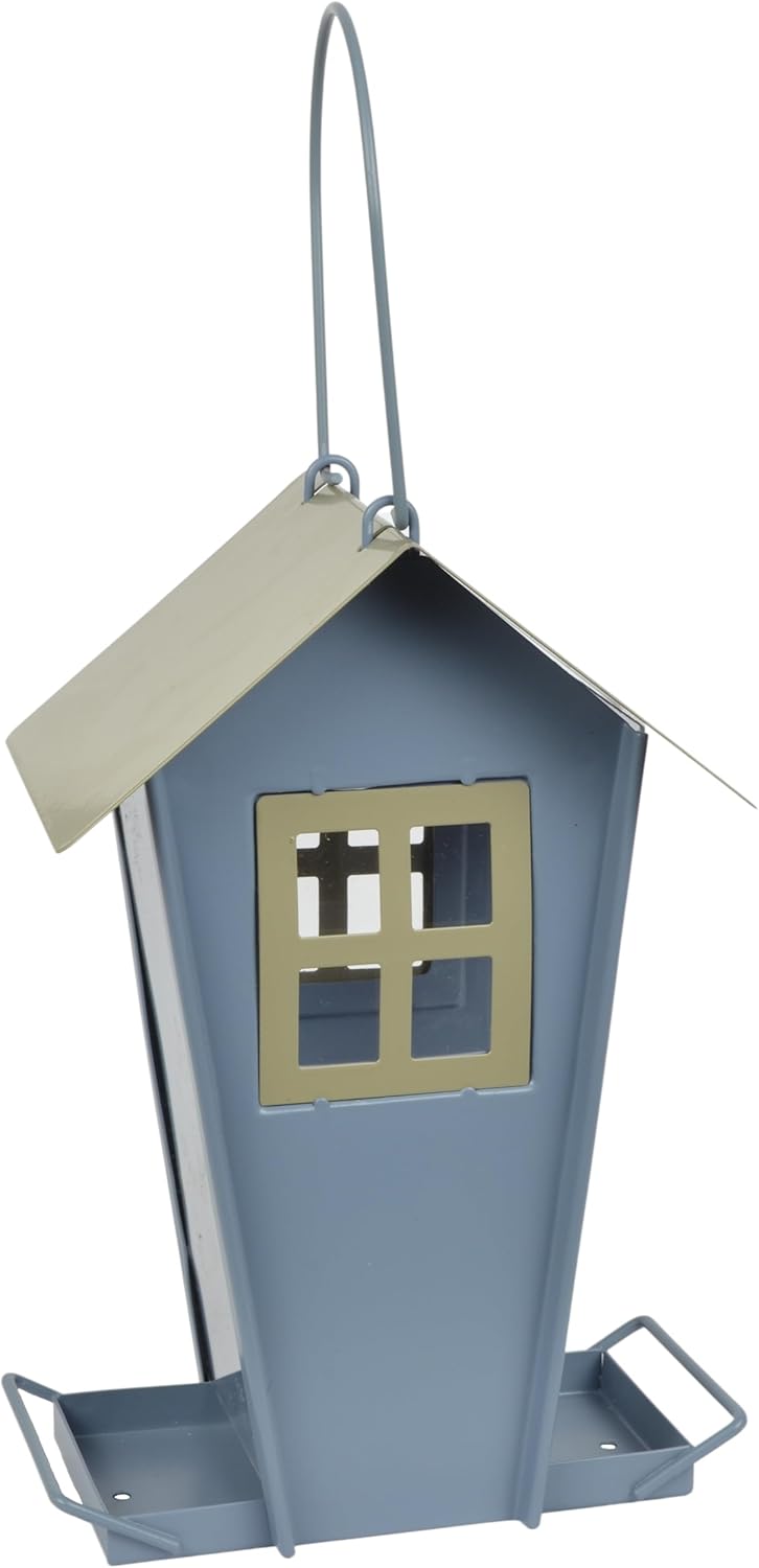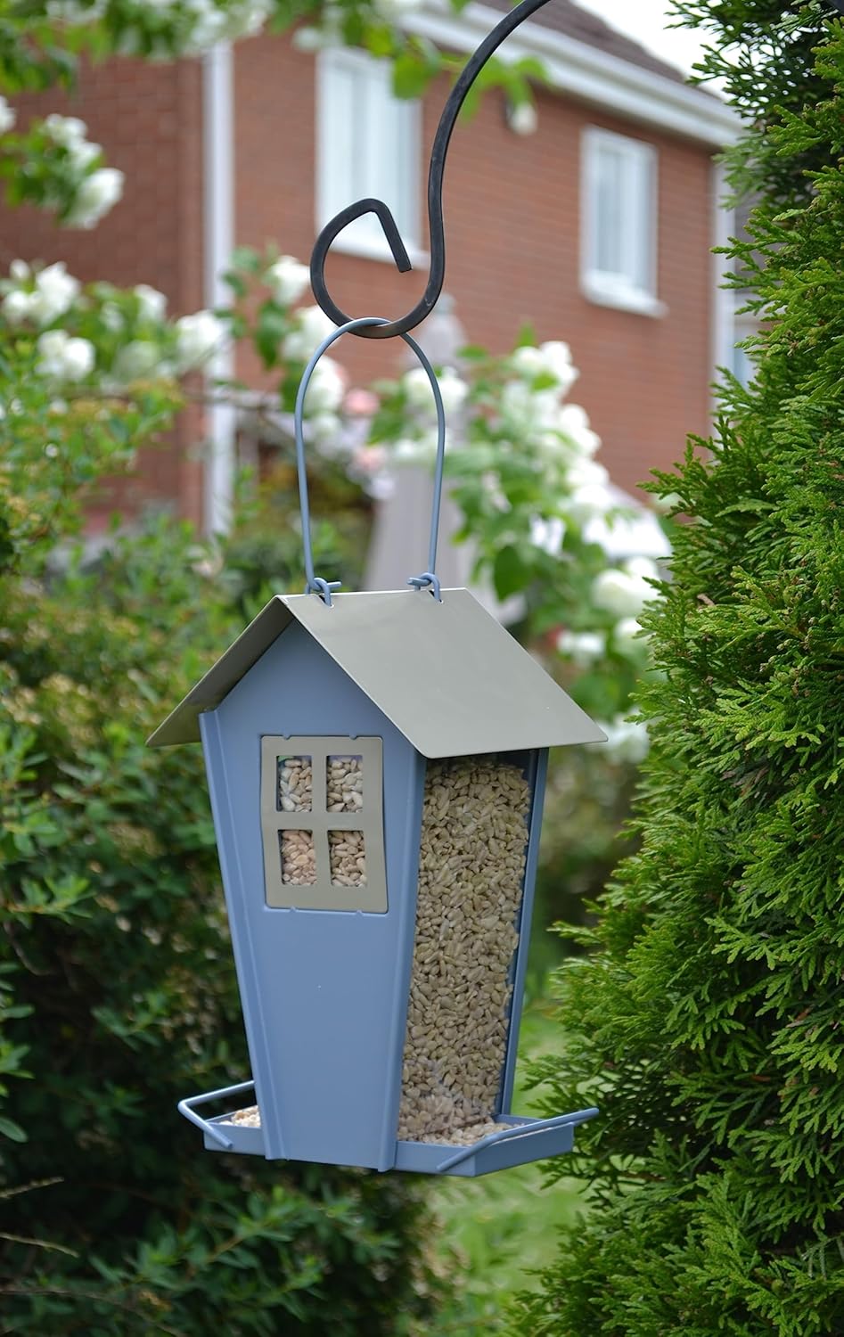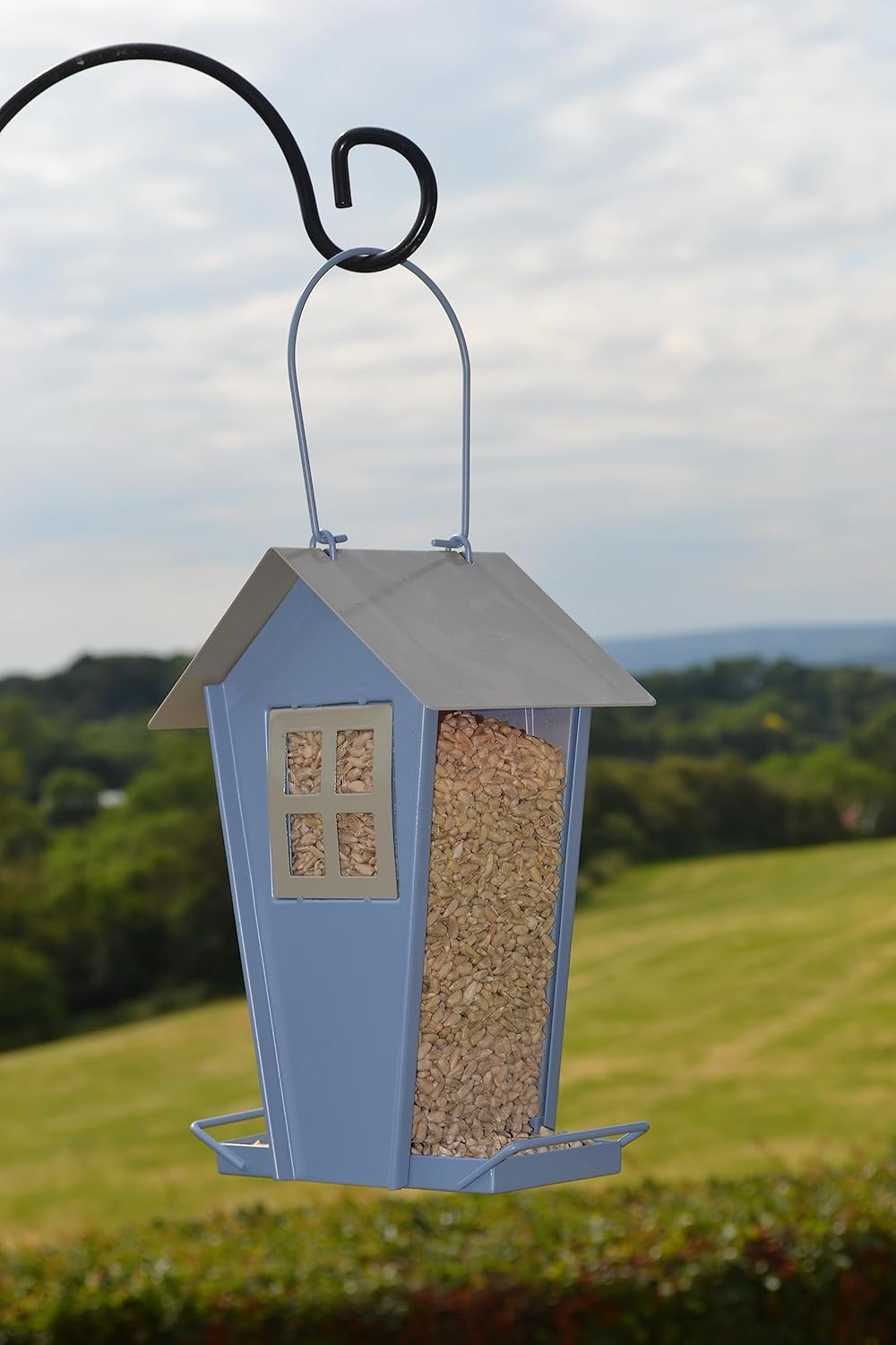 Supa “Sutherland” Wild Bird Seed & Sunflower Heart Feeder, House Shaped Contemporary Feeder, Ideal For Small & Medium Sized Garden Birds, ‎Blue/Grey Body with Grey roof.