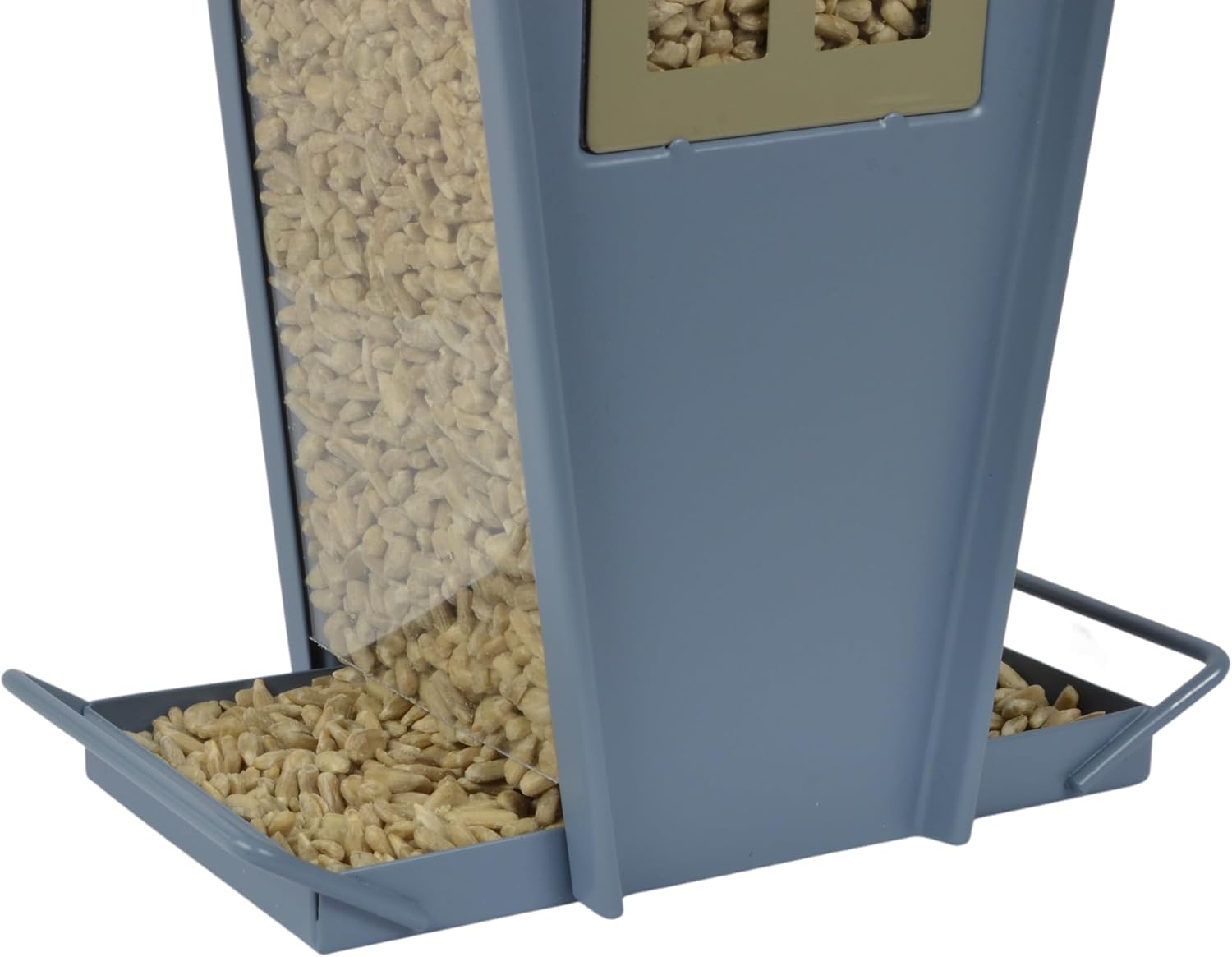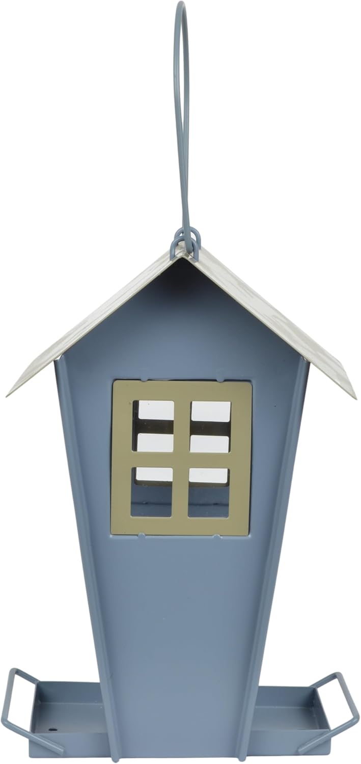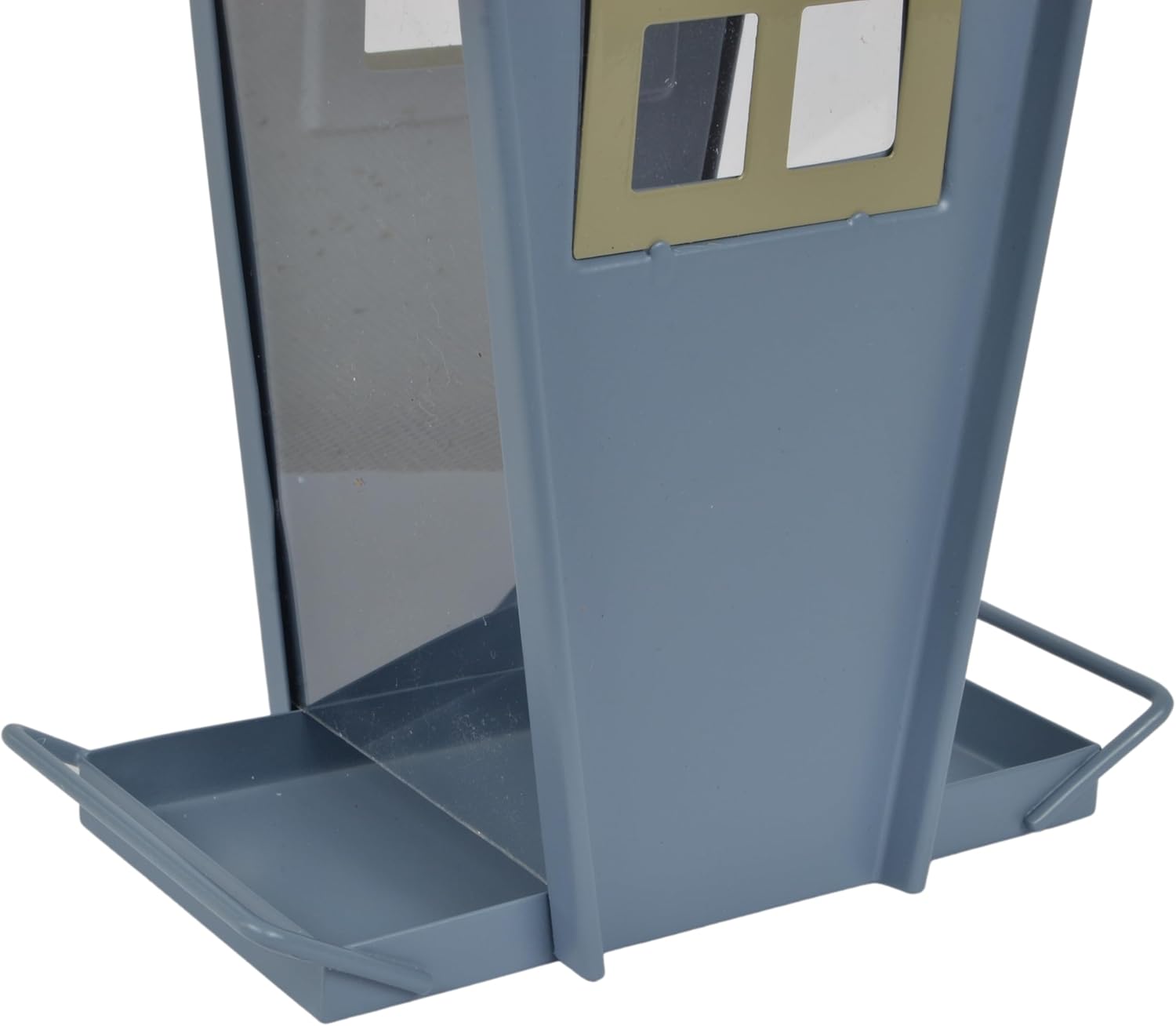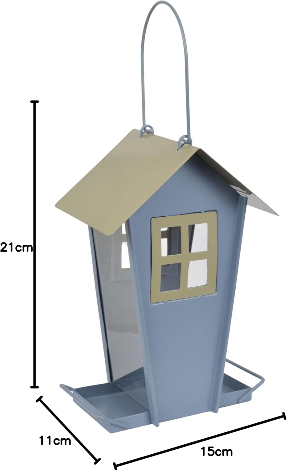 Supa “Sutherland” Wild Bird Seed & Sunflower Heart Feeder, House Shaped Contemporary Feeder, Ideal For Small & Medium Sized Garden Birds, ‎Blue/Grey Body with Grey roof.