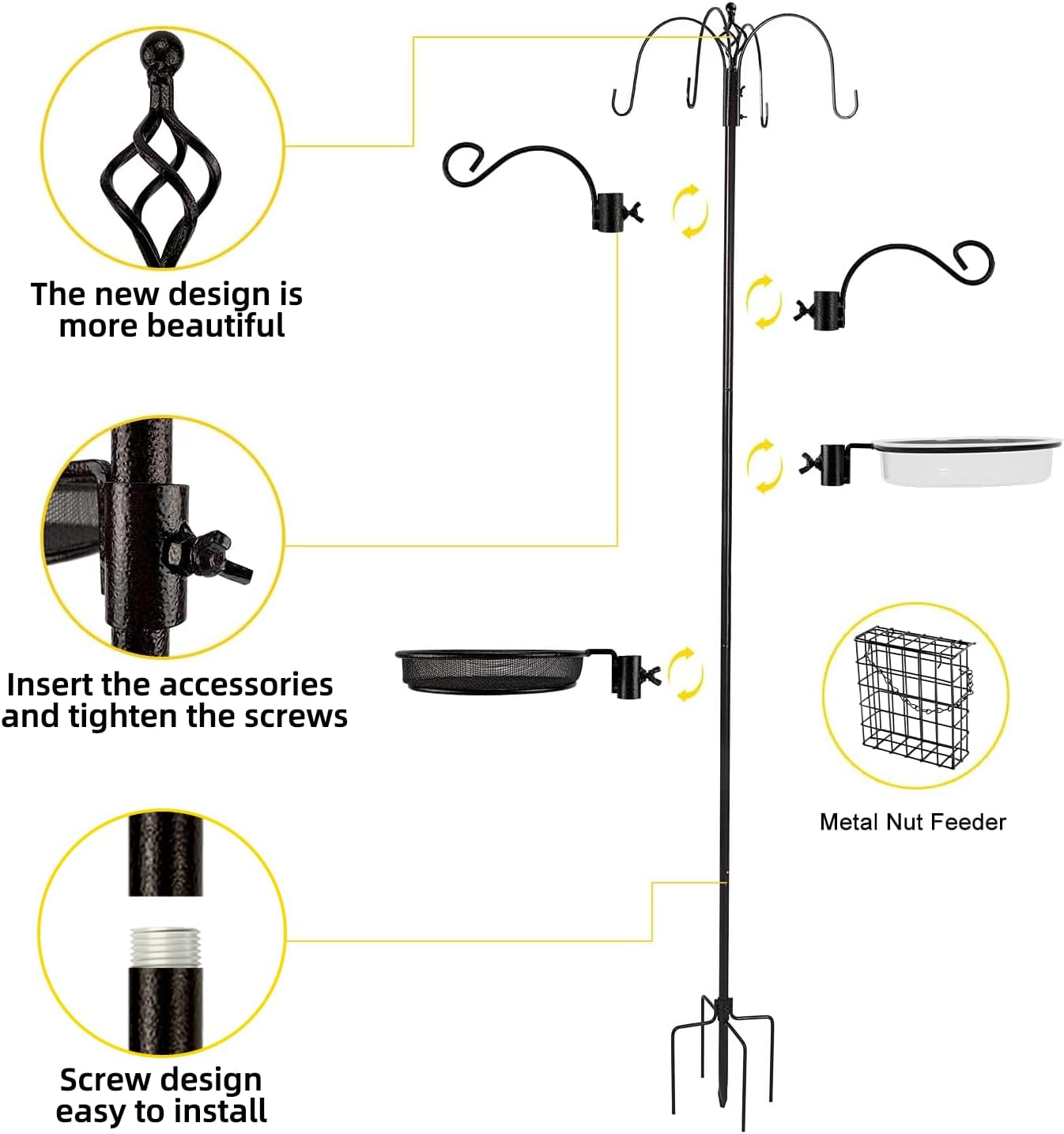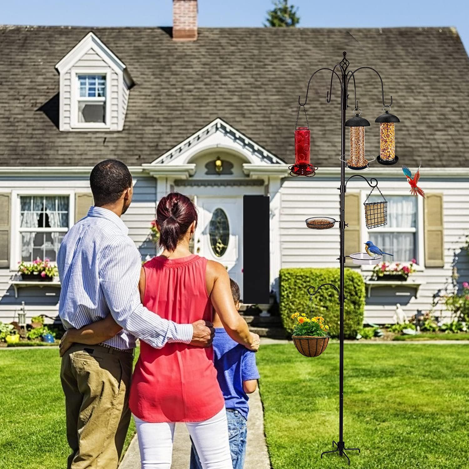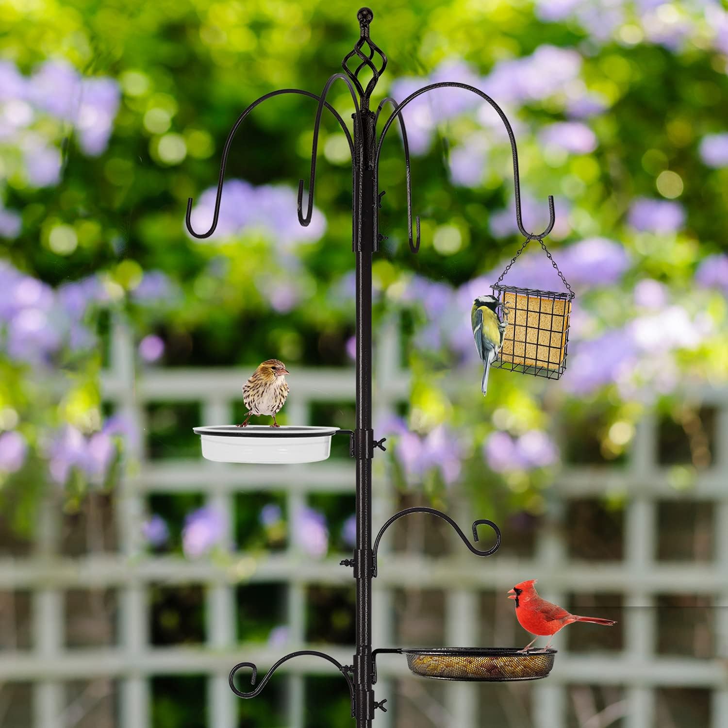 SPECTACULAR BIRD FEEDER POLE: Wild birds will naturally be attracted to the multi hook bird water feeder hanging and you can comfortably enjoy the birds feeding off the station from the comfort of your home! The rustic and vintage look of squirrel feeder will enhance your garden landscape and whether you opt to place big ground feeder in front of the house or the backyard