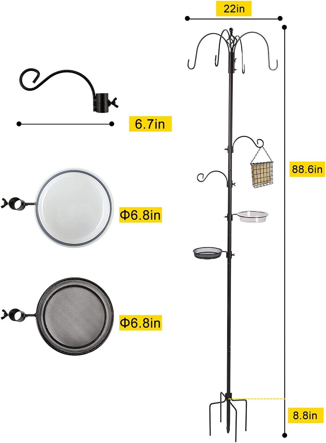 PREMIUM QUALITY BIRD WATER FEEDER: Our bird feeders hanging is rust resistant, sturdy steel pole stands 93.9 inches tall and 17.71 inches wide. You can easily adjust our bird feeders hanging station components to any desired location by loosening and tightening wing nuts by hand. No tools required! Forked base prong adds stability and permits easy placement. Just step down to plant. Mesh bath tray and water bowl detach for easy cleaning