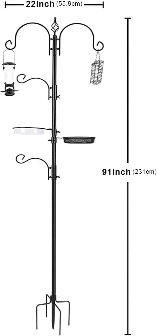 ❤Premium Quality Bird Feeding Station Kit: Rust resistant, sturdy steel pole stands 91 inches tall and 22 inches wide. Easily adjust components to any desired location by loosening and tightening wing nuts by hand. No tools required! Forked base prong adds stability and permits easy placement. Just step down to plant. Mesh tray and water bowl detach for easy cleaning