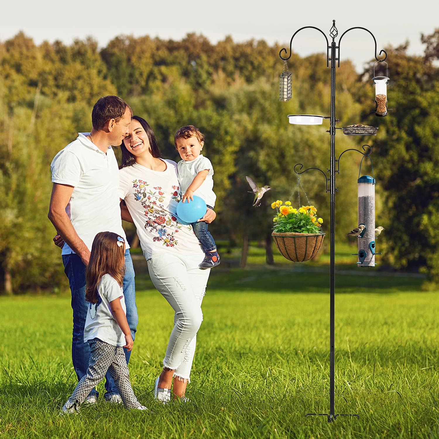 Urban Deco Bird Feeding Station Kit Bird Feeder Pole Wild Bird Feeder Hanging Station Kit Multi Feeder Hanging with Metal Suet Feeder Bird Bath for Attracting Wild Birds