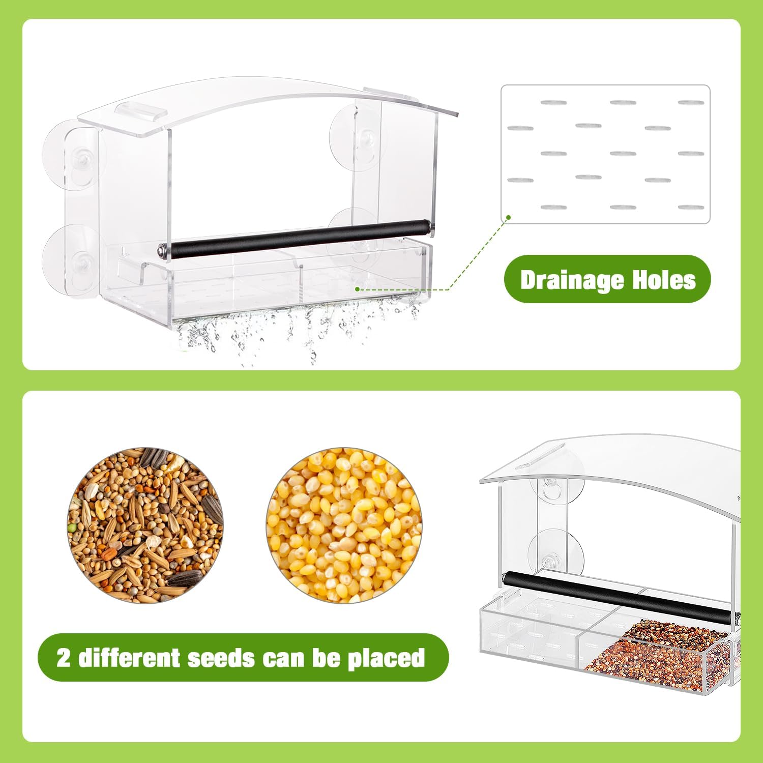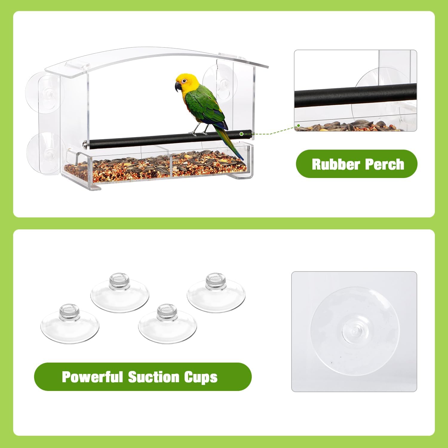Sturdy Construction: Crafted from high-quality acrylic material, this window bird feeder with strong suction cups is built to withstand various weather conditions. Its durable design ensures long-lasting performance, offering you a worthwhile investment.