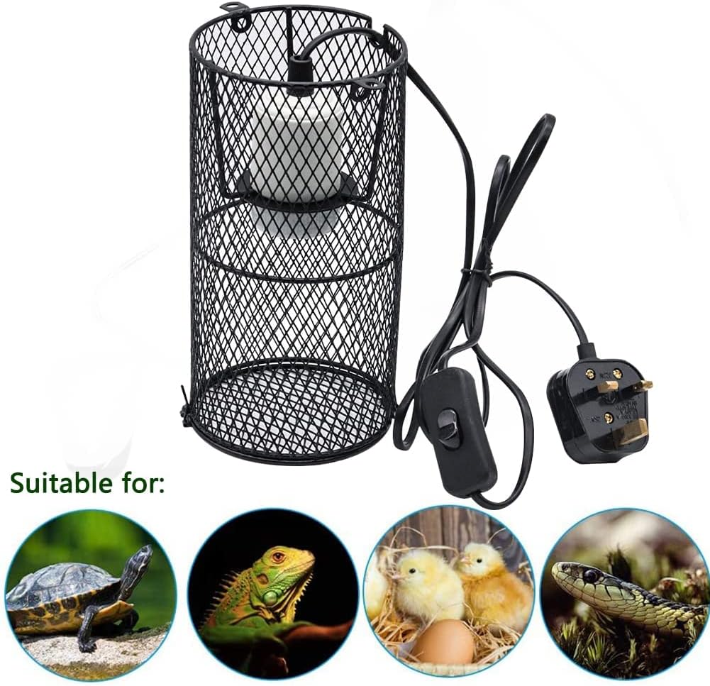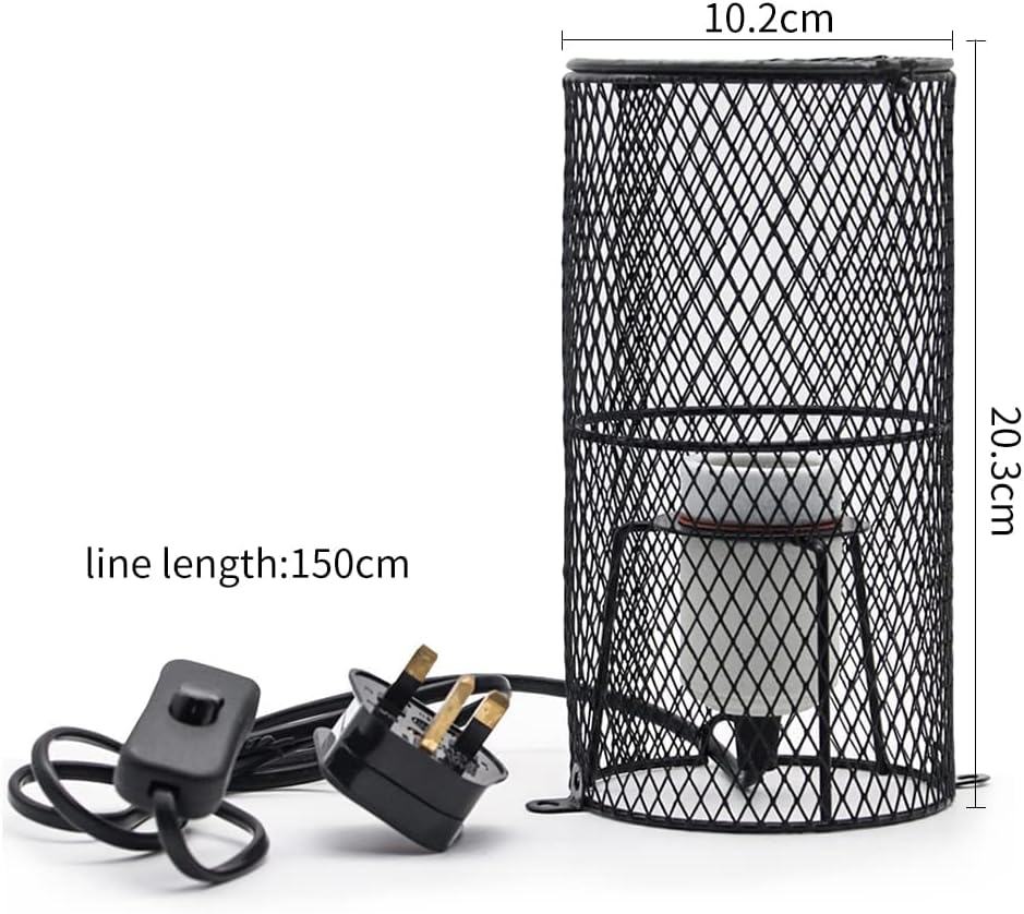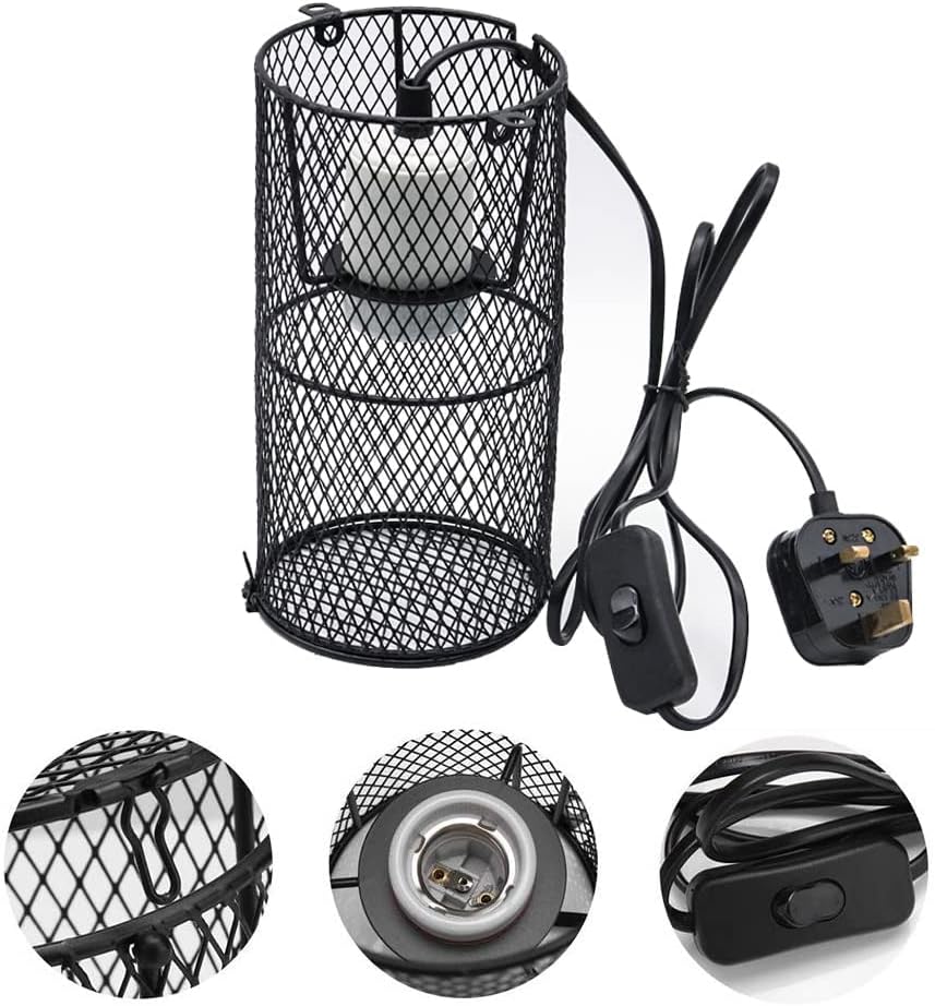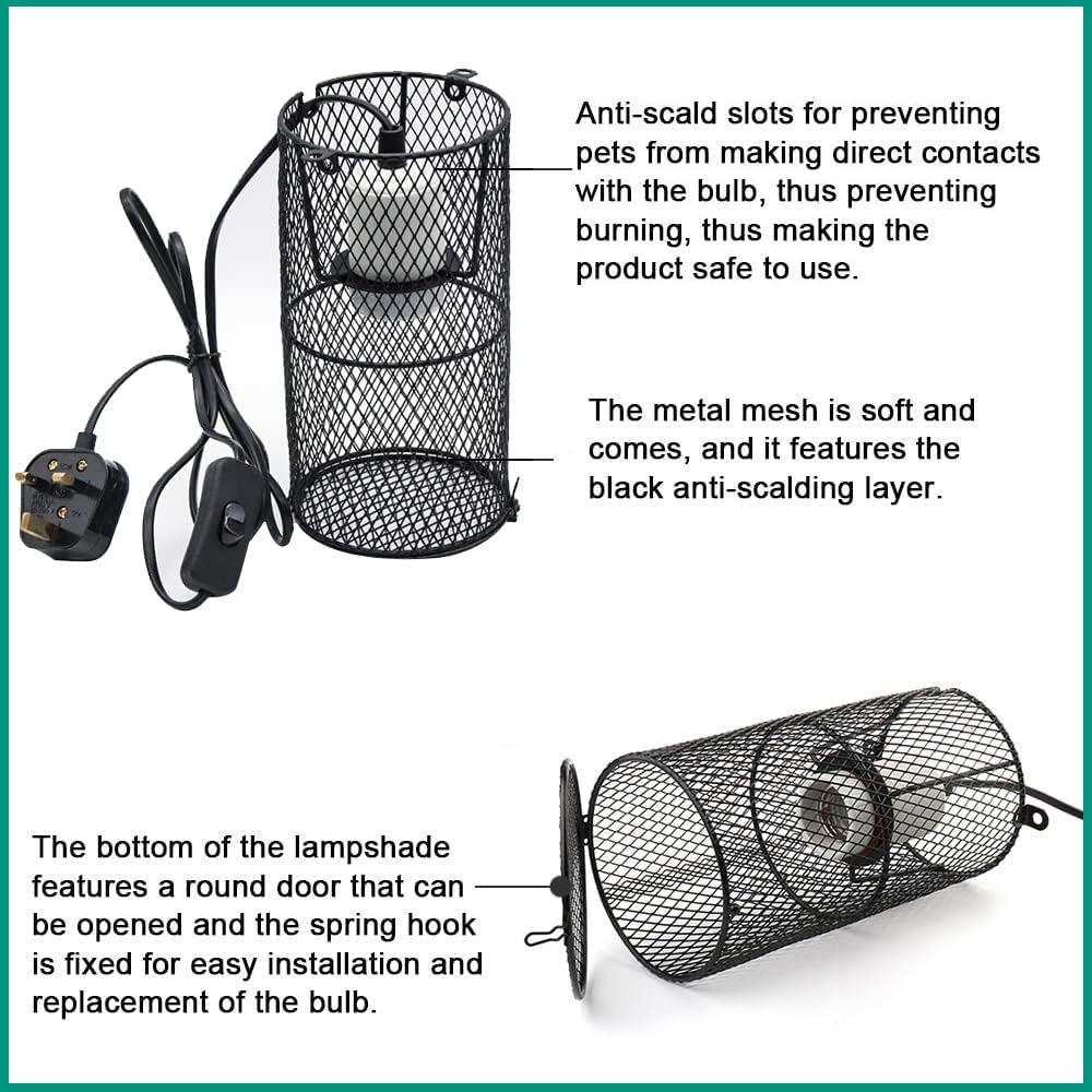 zalati Heating Lamp Socket with Lampshade Lighting Guard Anti Hot Bracket Cage Holder for Reptiles Pets Protection – 200W