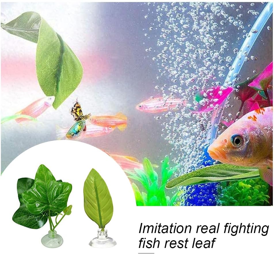 【UNIQUE DESIGN】This betta leaf comes with a suction cup, which can be firmly fixed on the surface of the fish tank without falling off. You can confidently use it. Note: Please clean the surface of the Aquarium before adding suction cups to the Aquarium.